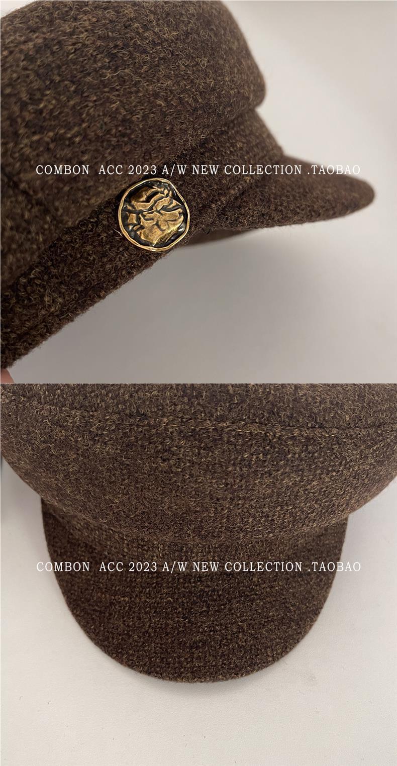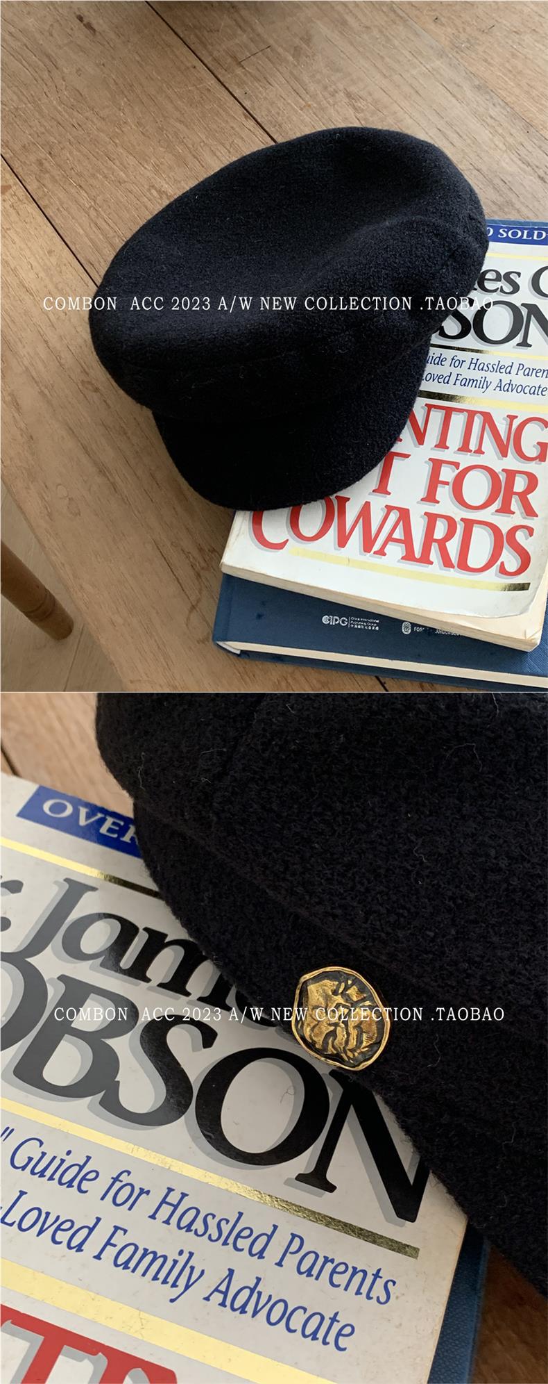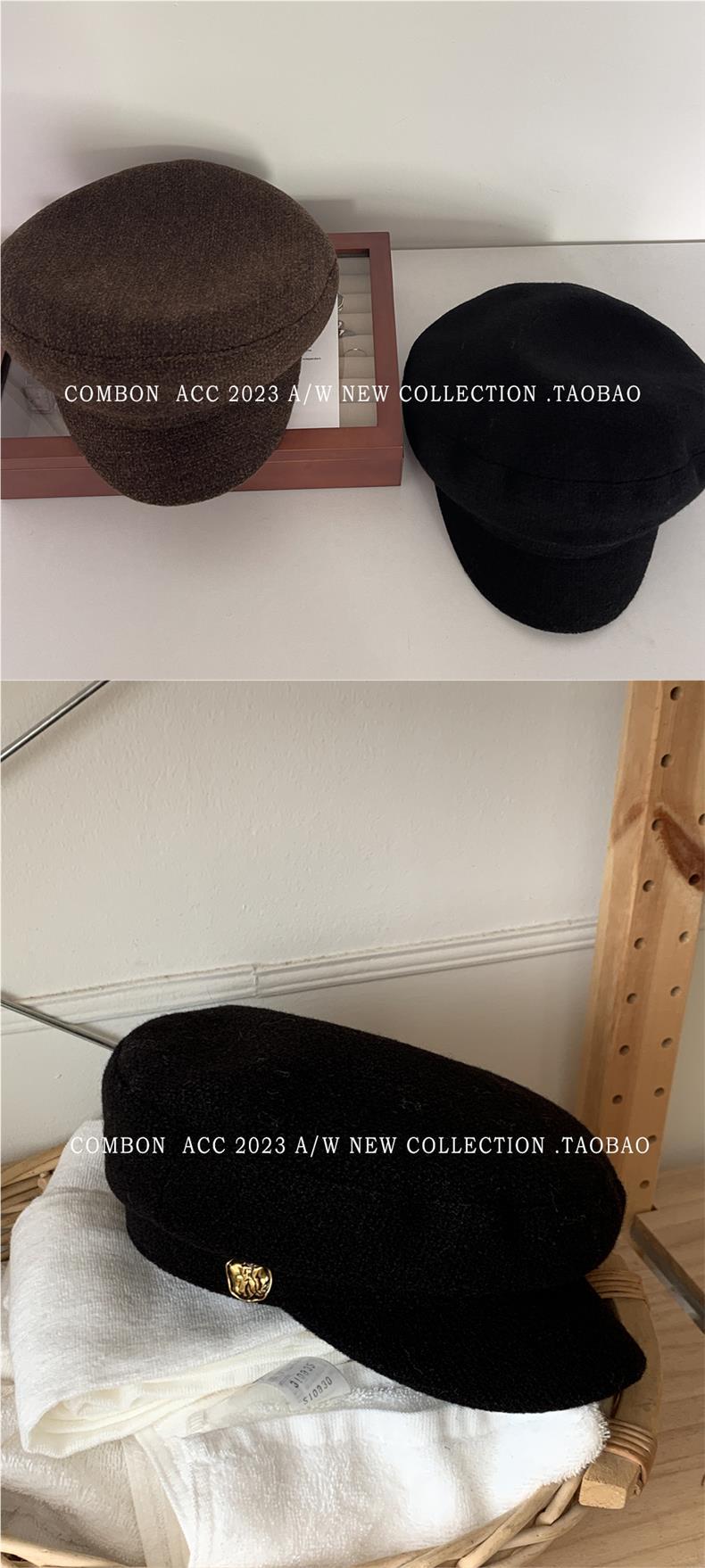Chapéu de jornaleiro de lã estilo coreano nova boina feminina outono e inverno chapéu octogonal retrô Chapéu de pintor de topo plano britânico