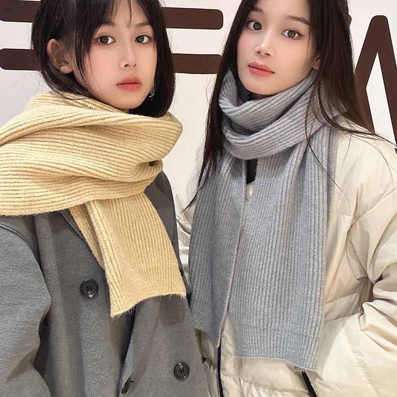 Cor confortável do chá do leite ~ azul escuro azul claro * cor sólida de malha estilo coreano Lenço versátil outono e inverno lenço quente para os amantes