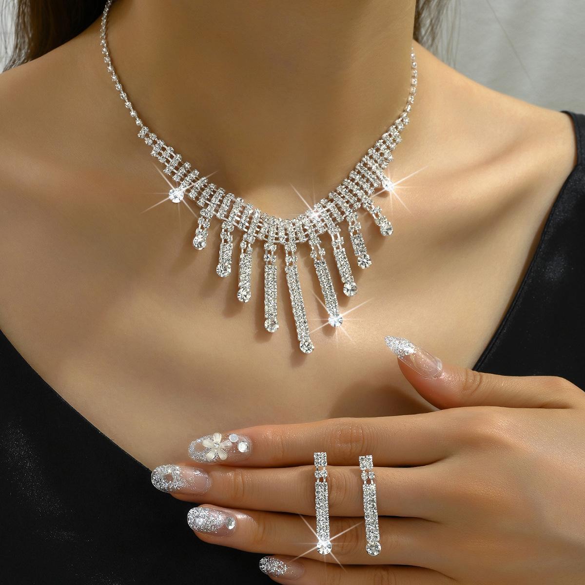 Novo brilhante strass irregular colar brincos terno nupcial jóias de casamento elegante simples all-match set