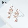 S925 Sterling Silver Diamond Double Five-pointed Star Tassel Brincos Estilo Coreano Estilo Fresco Estrela Brincos Orelha Fivela Brincos de Estudante