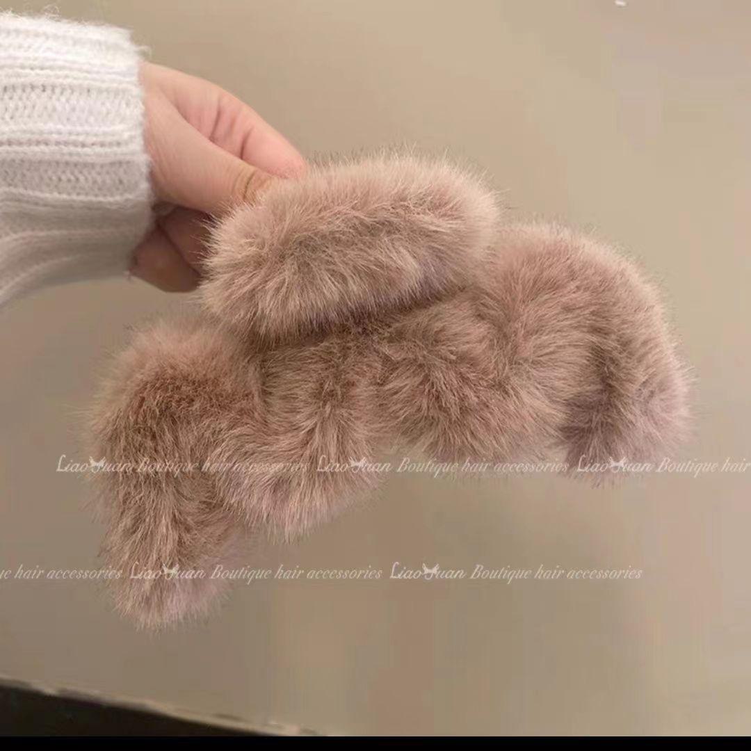 Outono e inverno elegante cocar de grampo de cabelo elegante clipe de pelúcia feminino 2023 novo clipe de tubarão grande nicho