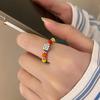 Anel Elástico Quadrado Arco-Íris Feminino Estilo K Moda Anel de Design Elegante Anel de Dedo Indicador Estudantil Tendência