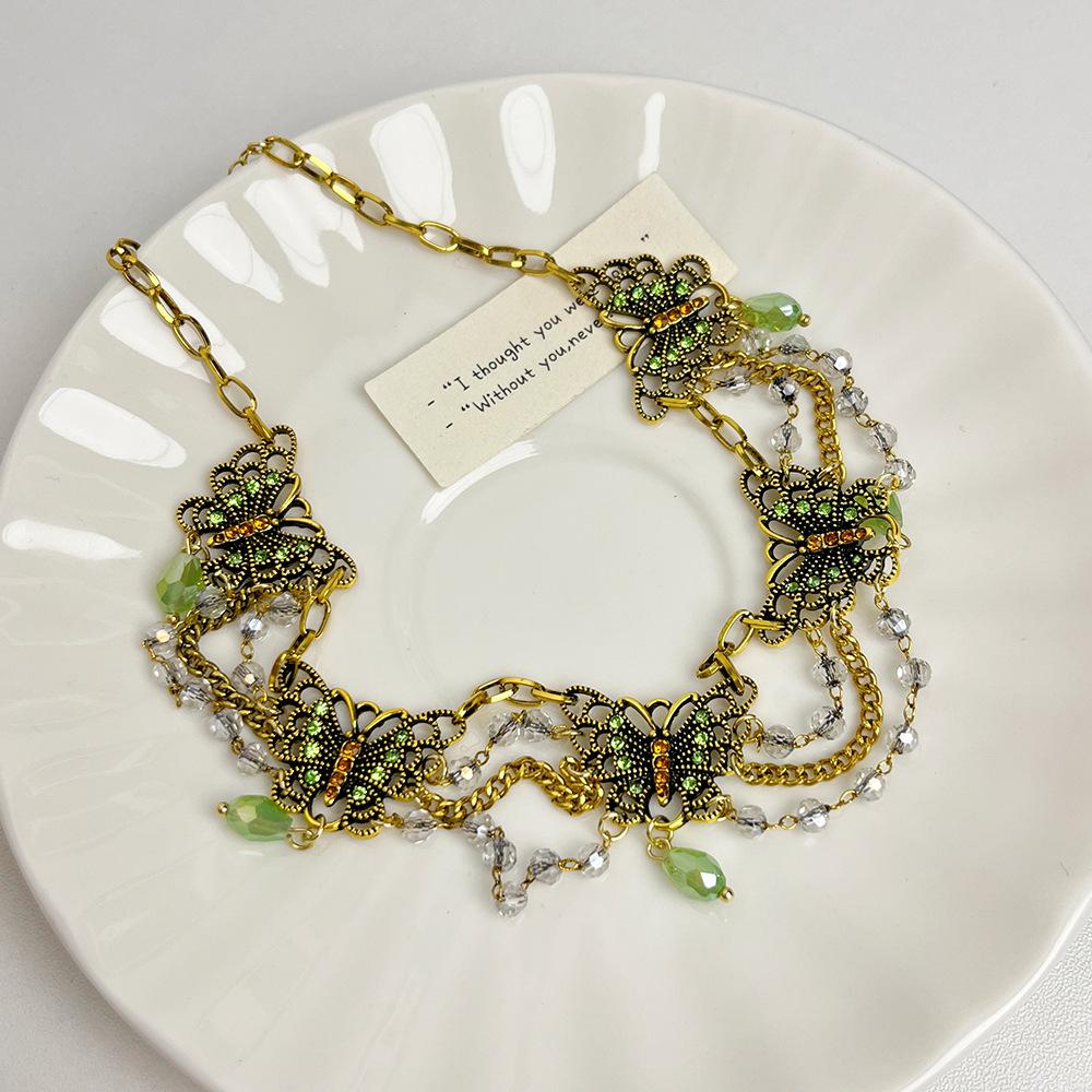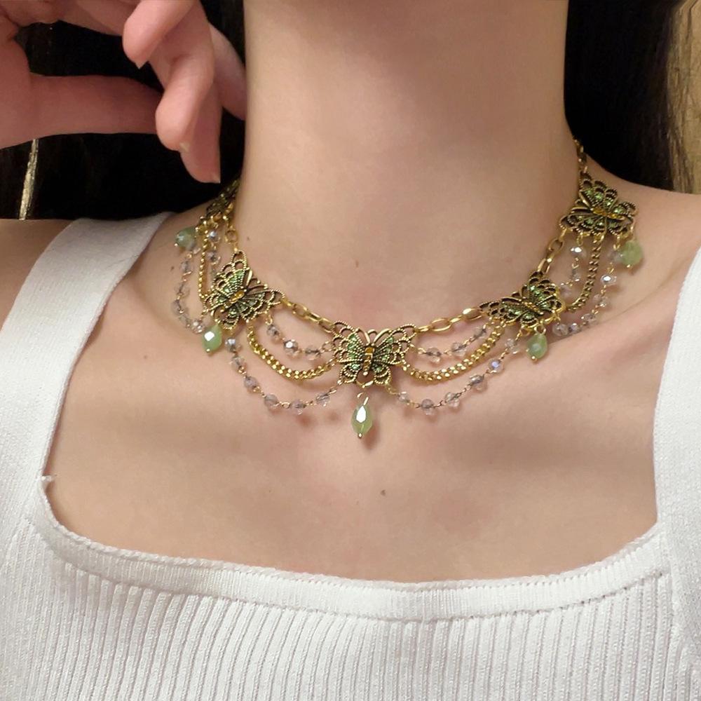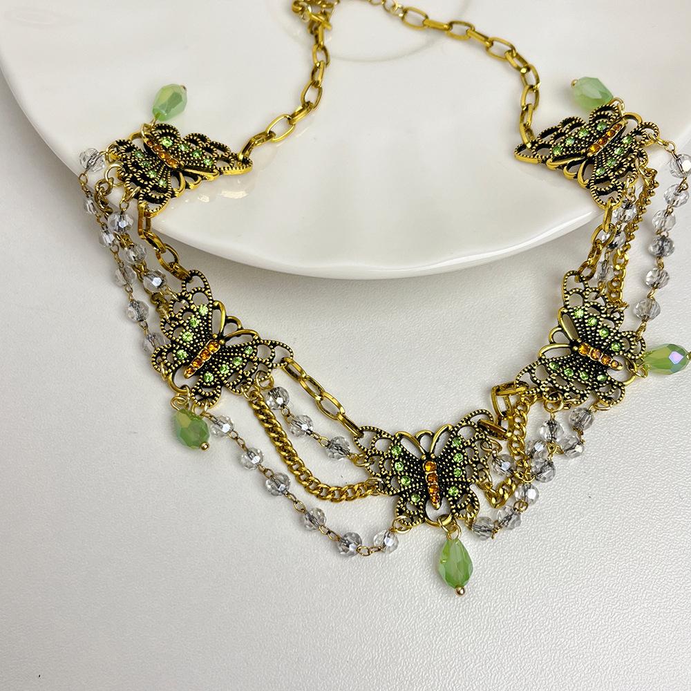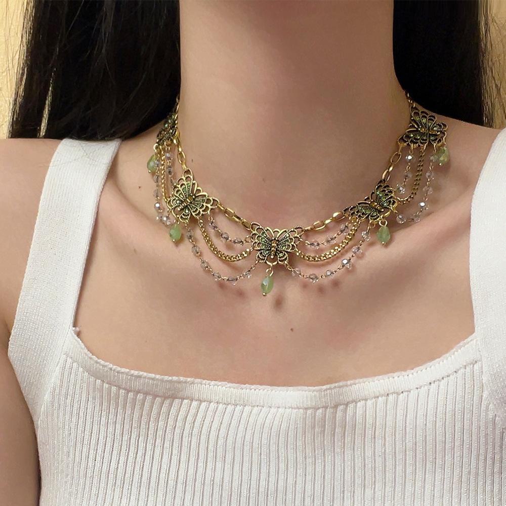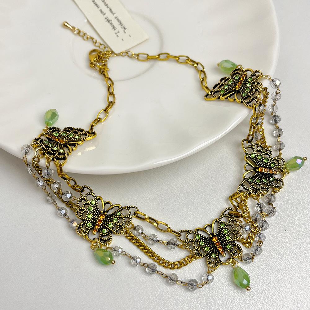 Novo estilo chinês indústria pesada multi-camada borla diamante-incrustado borboleta colar de nicho feminino de alta qualidade textura hot girl clavícula cadeia pescoço corrente maré