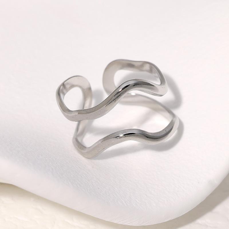 Anel Minimalista de Linha Transfronteiriça em Aço Inoxidável Anel Aberto Assimétrico Estilo Simples e Frio Anel de Aço Titânio de Alta Qualidade