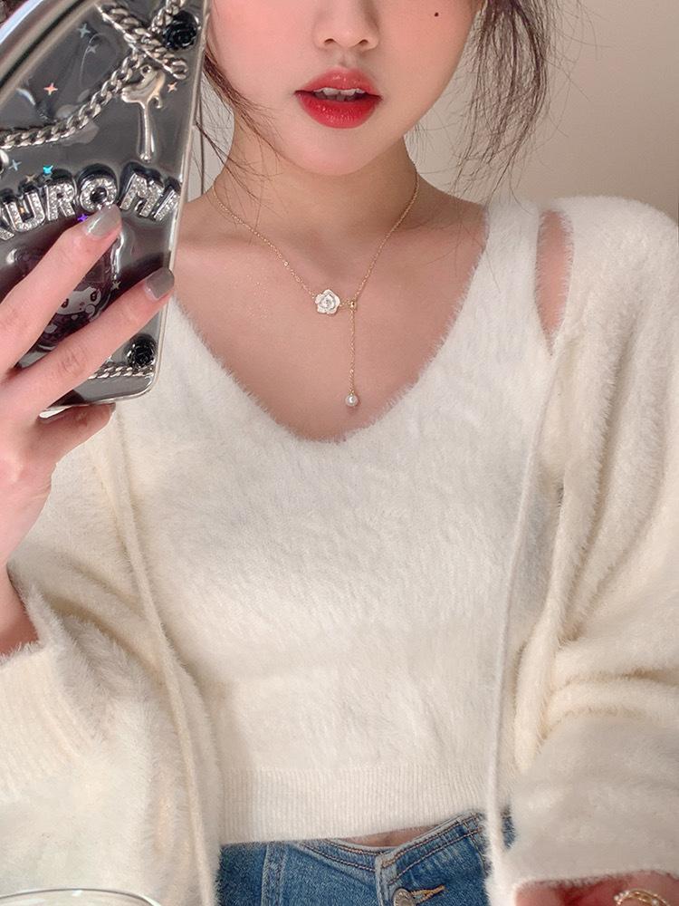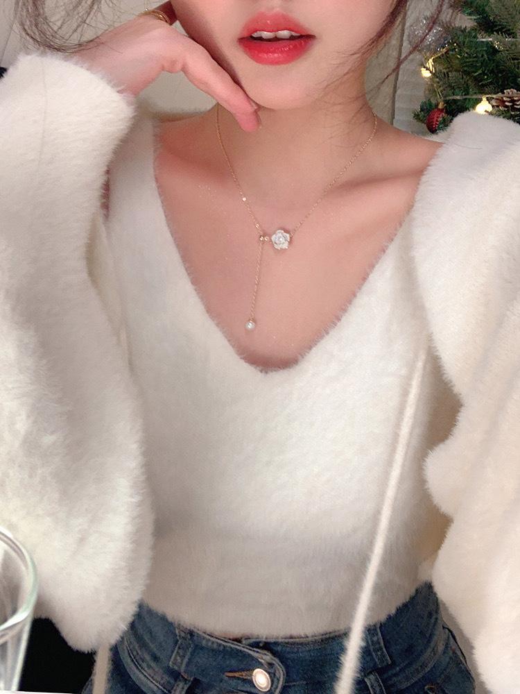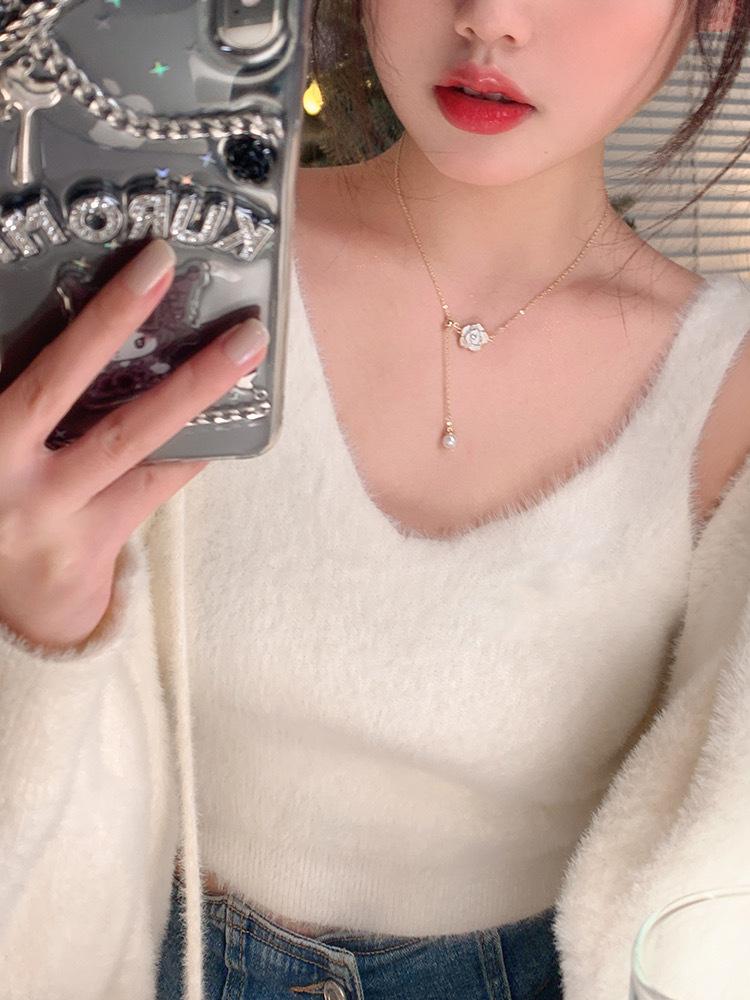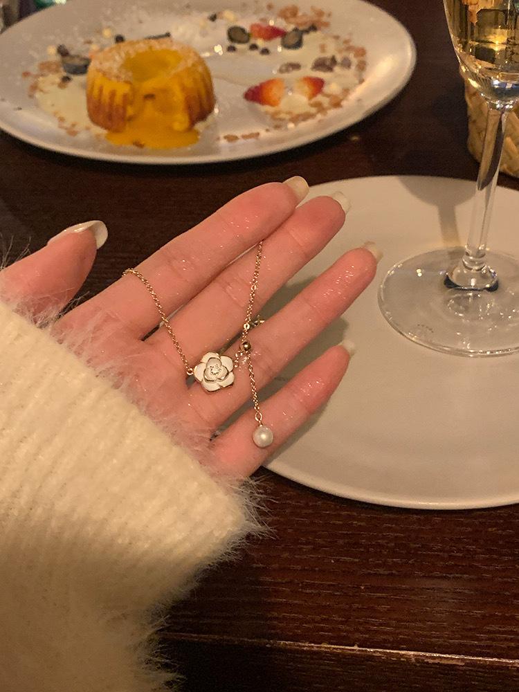 Nicho Luz Luxo Camada Única Design Pérola Camélia Colar Celebridade Elegante Bead Tassel High-grade Clavícula Colar Cadeia