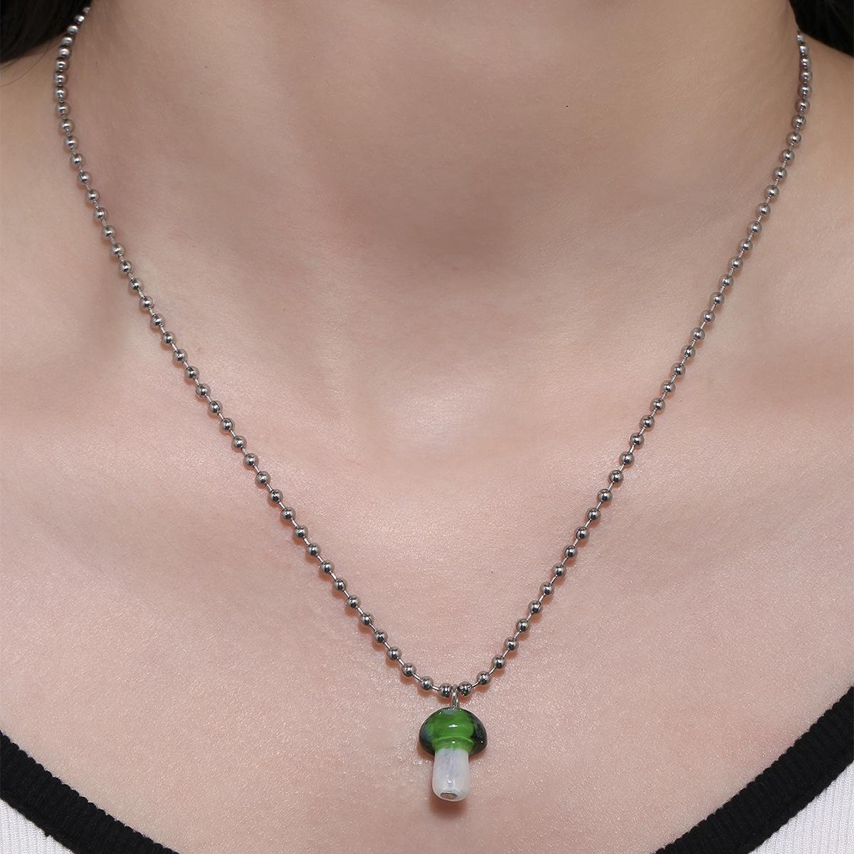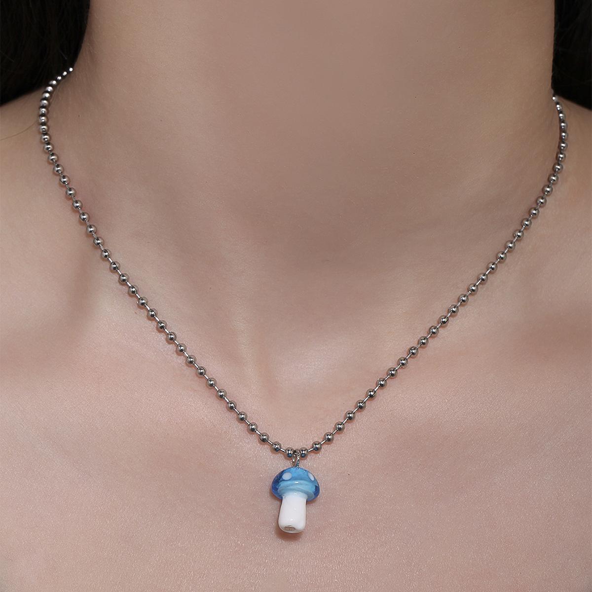 | qualidade do produto: | Corrente de aço inoxidável + pingente de cogumelo de vidro |