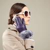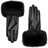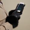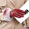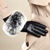 Couro genuíno das mulheres luvas de pele de carneiro outono e inverno boca de pele grande pele de coelho forrado de lã grossa luvas quentes à prova de vento de condução tela sensível ao toque