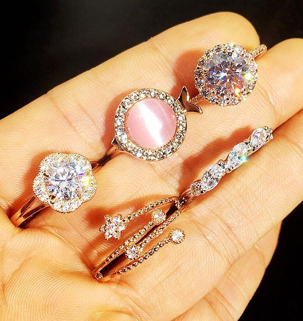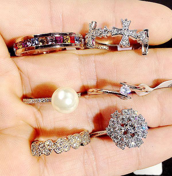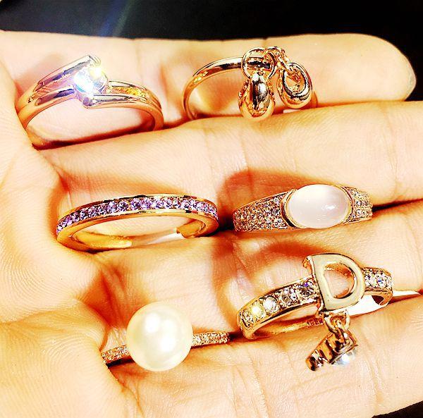 Anel pequeno fresco estilo coreano micro-incrustado de alta qualidade banhado a ouro real moda simples anel de mindinho anel versátil lote misto
