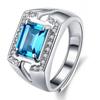 Novo Negócio Moda Elegante Topázio Retangular Simulado Azul Marinho Anel Aberto Masculino Anel Masculino