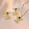 Colar de Zircônia Esmeralda Simulada, Anel Quadrado Retrô Diamante Completo, Brincos Femininos e Nobres, Conjunto de Joias de Brincos