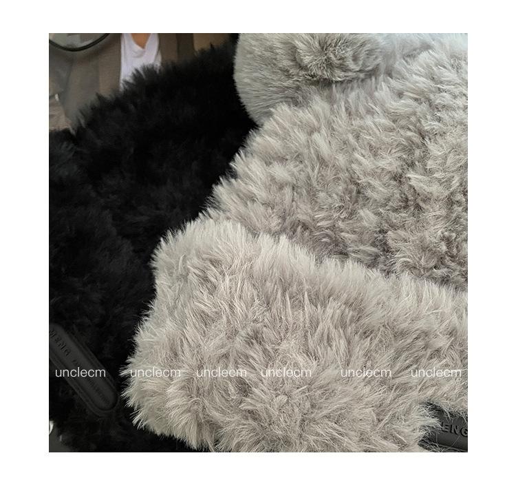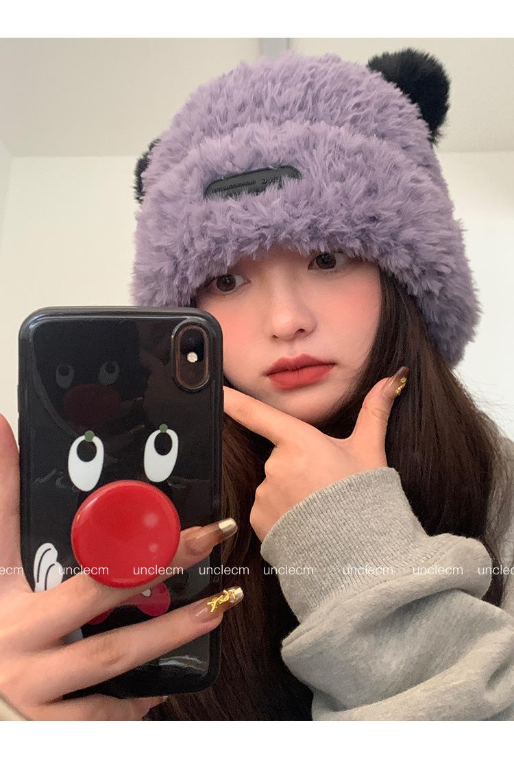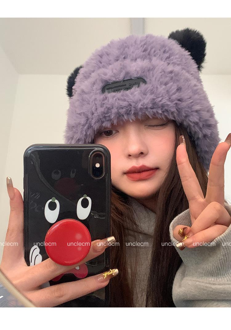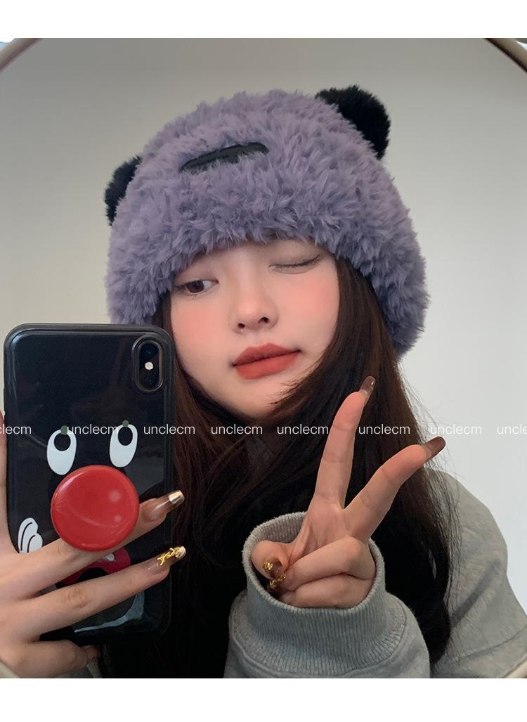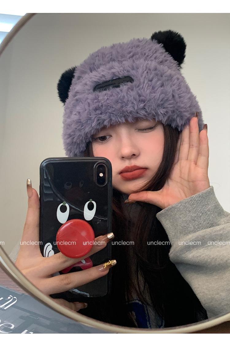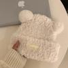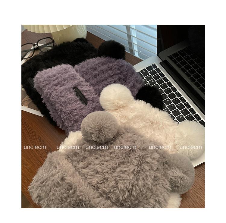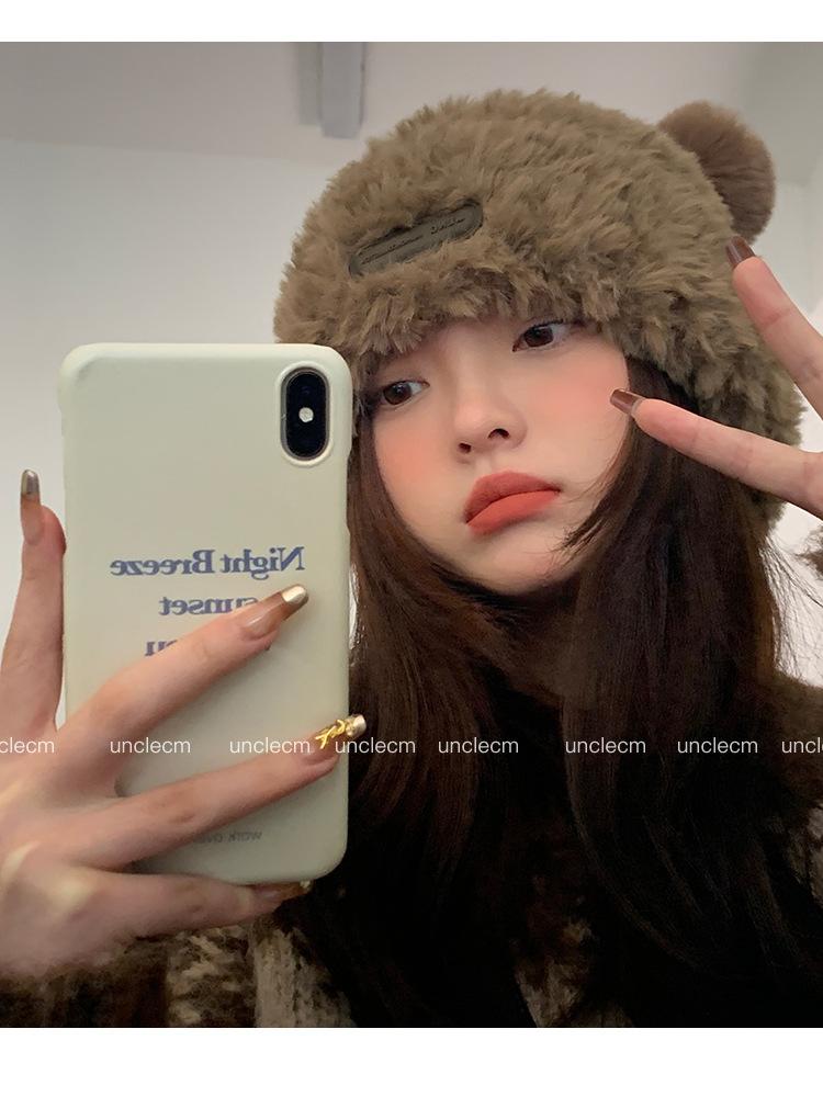 Bonito urso de pelúcia tricotado lã chapéu para mulheres outono e inverno engrossado quente pele sintética pullover earmuffs marrom