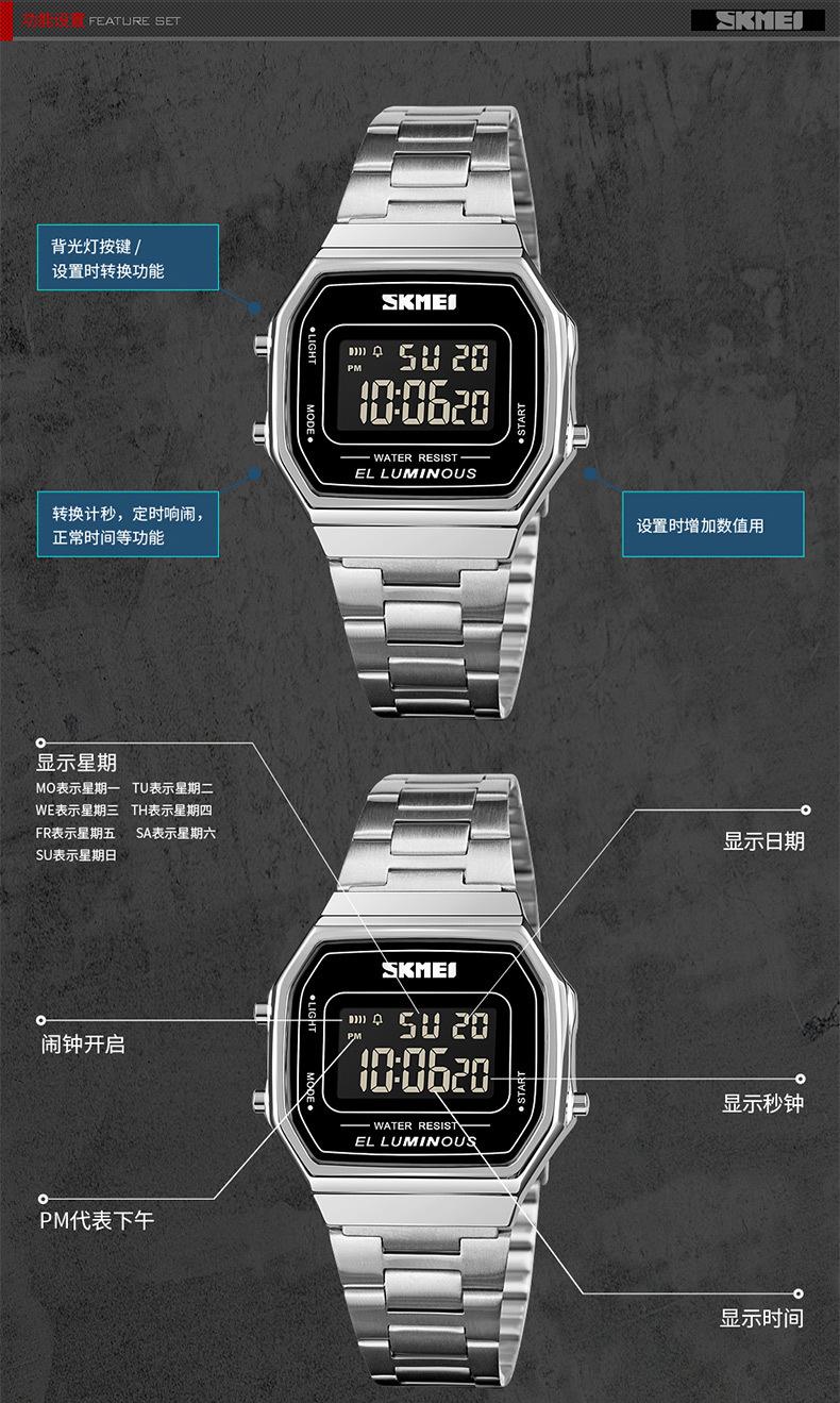 Skmei Sudeste Asiático venda quente moda casual pequeno quadrado relógio vintage masculino à prova d'água multi-funcional relógio esportivo