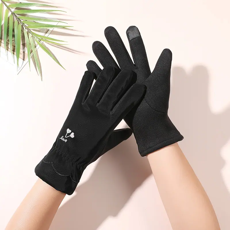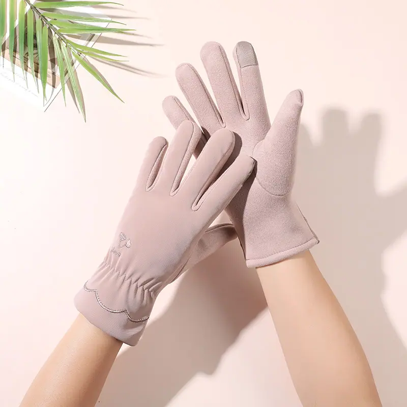 Luvas Quentes Femininas Simples Estilo Coreano Outono e Inverno Forradas com Lã Corta-Vento, Impermeáveis, à Prova de Frio, Compatíveis com Tela Sensível ao Toque para Esportes ao Ar Livre, Ciclismo, Direção