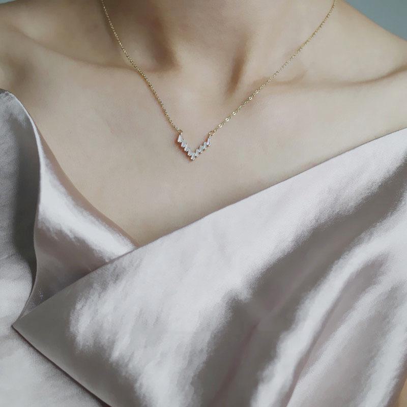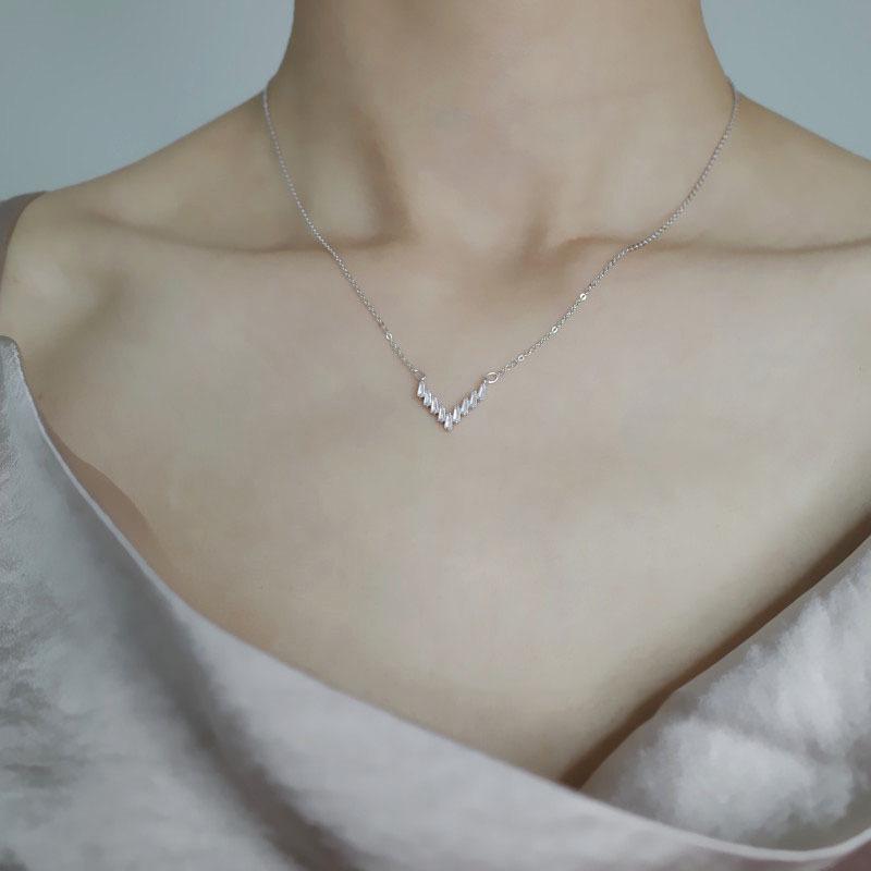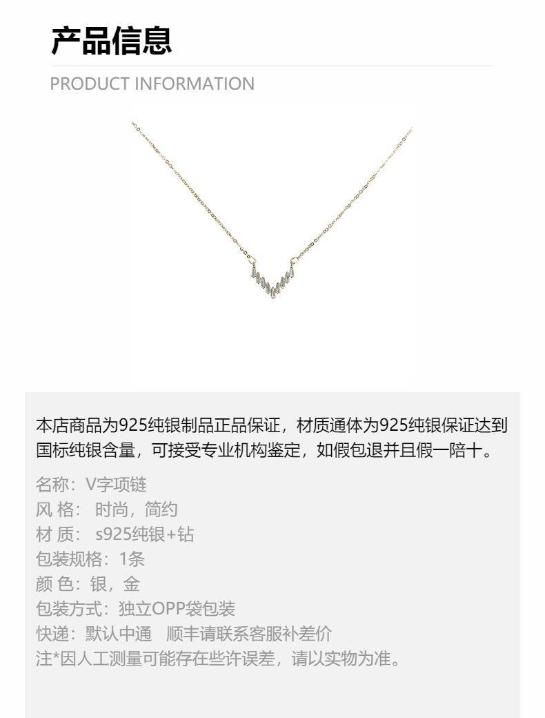 S925 Prata Esterlina Clavícula Corrente Simples Estilo Frio Elegante Colar em Forma de V Chique Coreano Explosões Versáteis