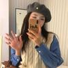 Senhorita Yan/coreano único metal B- palavra artesanal boina de lã elegante fivela de ouro de lã boina cinza