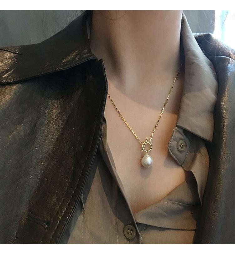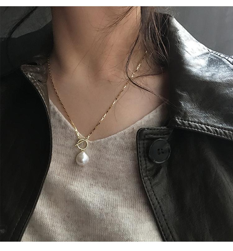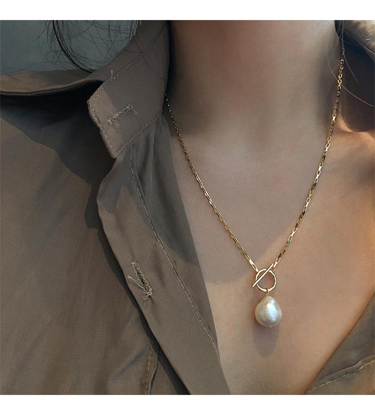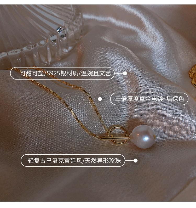 Colar de pérolas de água doce com formato especial, corrente de caixa, fivela de clavícula, design de moda feminina, senso retrô, joia de pescoço para celebrantes da Internet