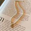 Colar de pérolas de água doce natural de luxo leve europeu e americano feminino Lírio Branco mesmo estilo alto sentido moeda de ouro pingente de olho cadeia de clavícula