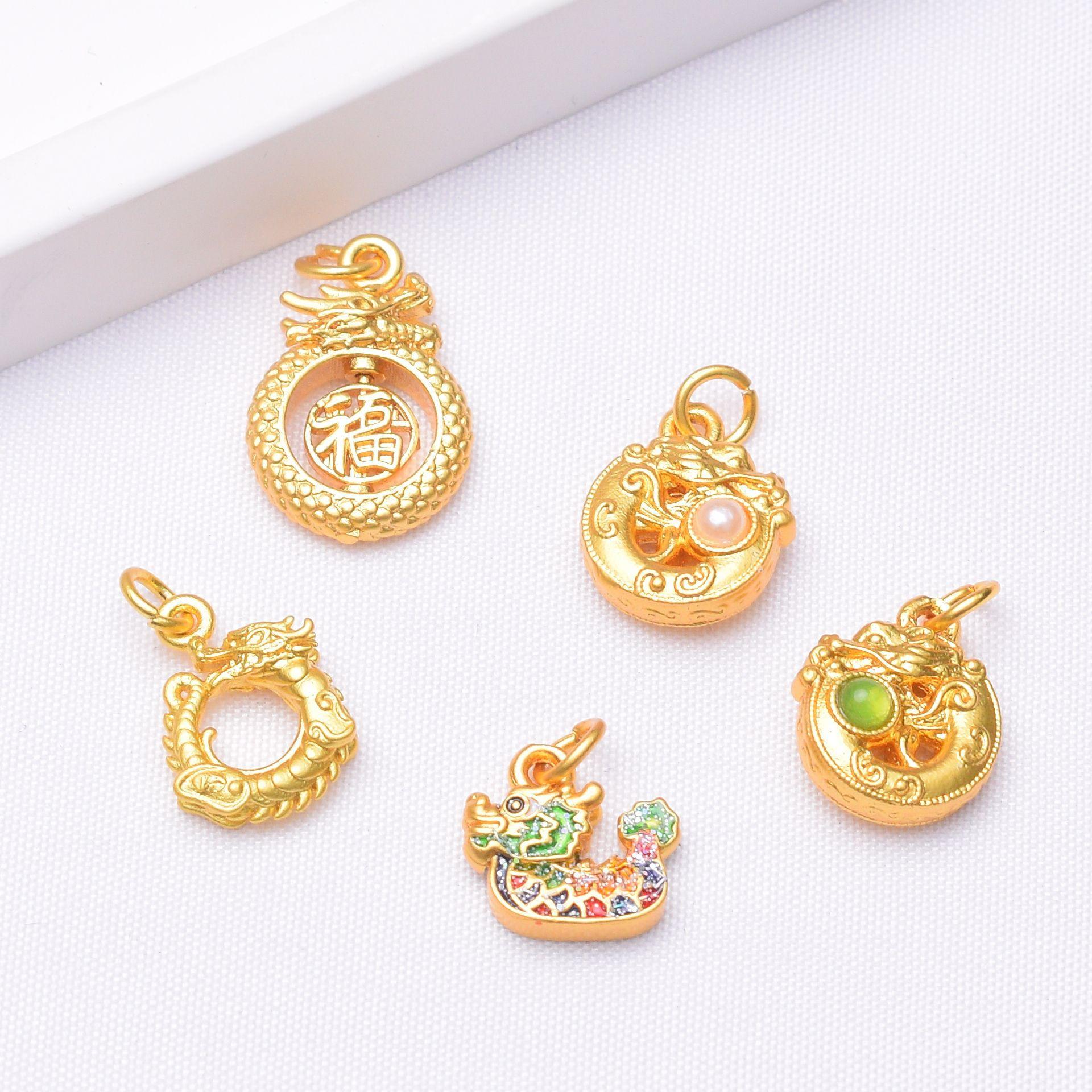 Pingente de pulseira de ouro antigo preservador de cor dragão zodíaco trava de segurança acessórios de pulseira de orquídea material miçangado faça você mesmo atacado