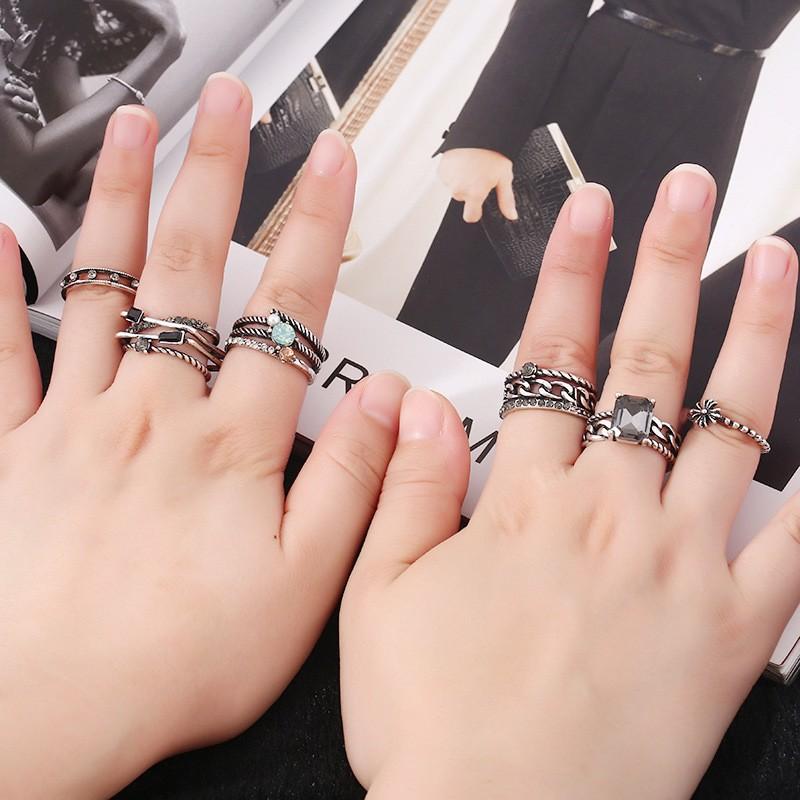 Fabricante de anéis de liga com temperamento de moda para comércio exterior, anel de joalheria europeia e americana, conjunto de anéis de combinação retrô
