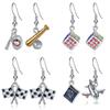 Estilo Literário da Amazon Gancho de Orelha de Beisebol Brincos Criativos para Viagem de Férias Festival Feminino Tabuleiro de Xadrez Preto e Branco de Corrida
