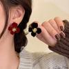 Brincos de veludo com flores para outono e inverno para mulheres, estilo leve, luxo, nicho, design, temperamento de alta qualidade, brincos de clipe de orelha para combinar