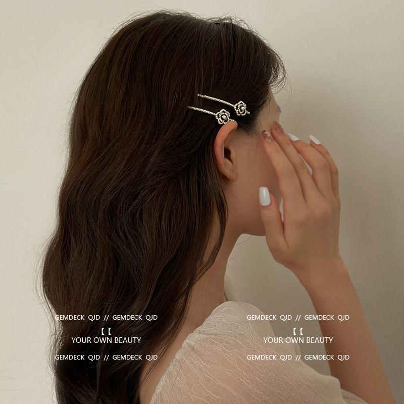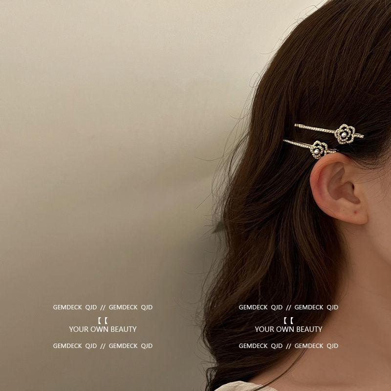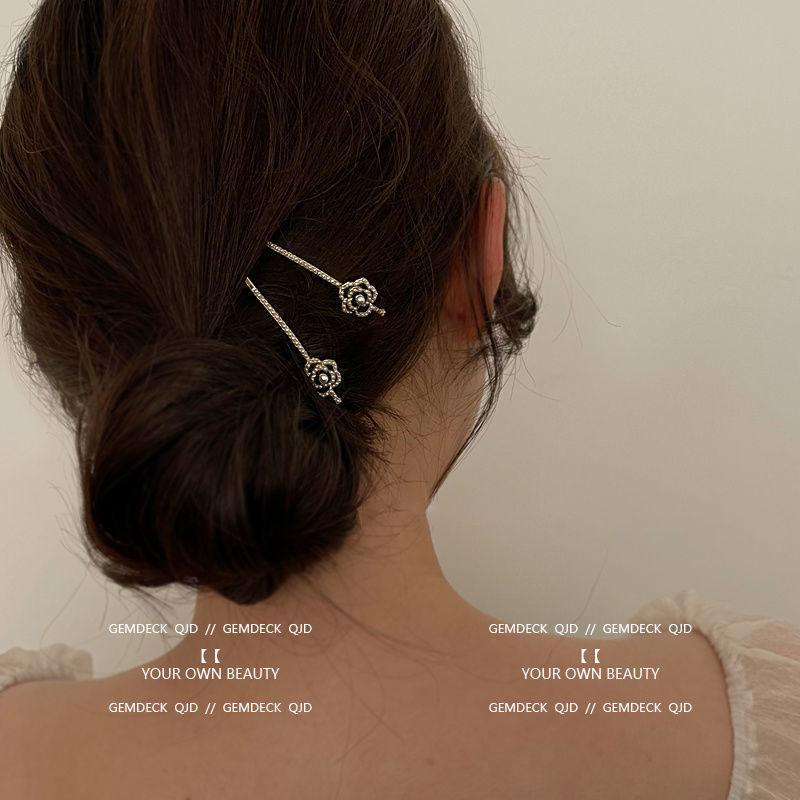 Estilo retrô ~ Grampo de cabelo de pérola com flor de camélia francesa fada Hepburn retrô Grampo de cabelo elegante e de alto estilo