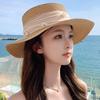 Moda Casual Elegante Arco Fita Chapéu de Palha Chapéu de Praia à beira-mar de alta classe Chapéu de sol feminino de aba grande