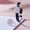 Little Red Book popular flor brilhante papalaka pulseira de pulso pulseira feminina cinto relógio ajustável anel de diamante rosa