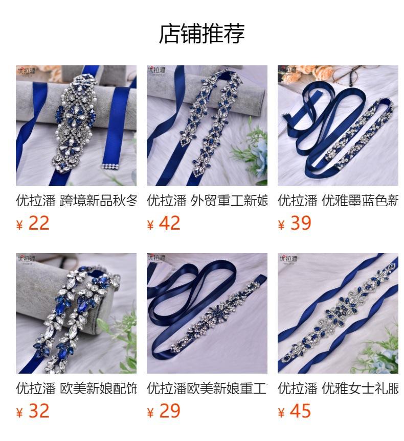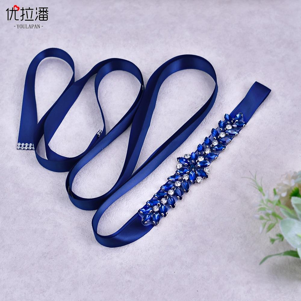 Youlapan S69 Azul Tinta Popular Transfronteiriço Azul Tinta Strass Cinto de Vestido de Luxo Feito à Mão Acessórios para Casamento e Banquete