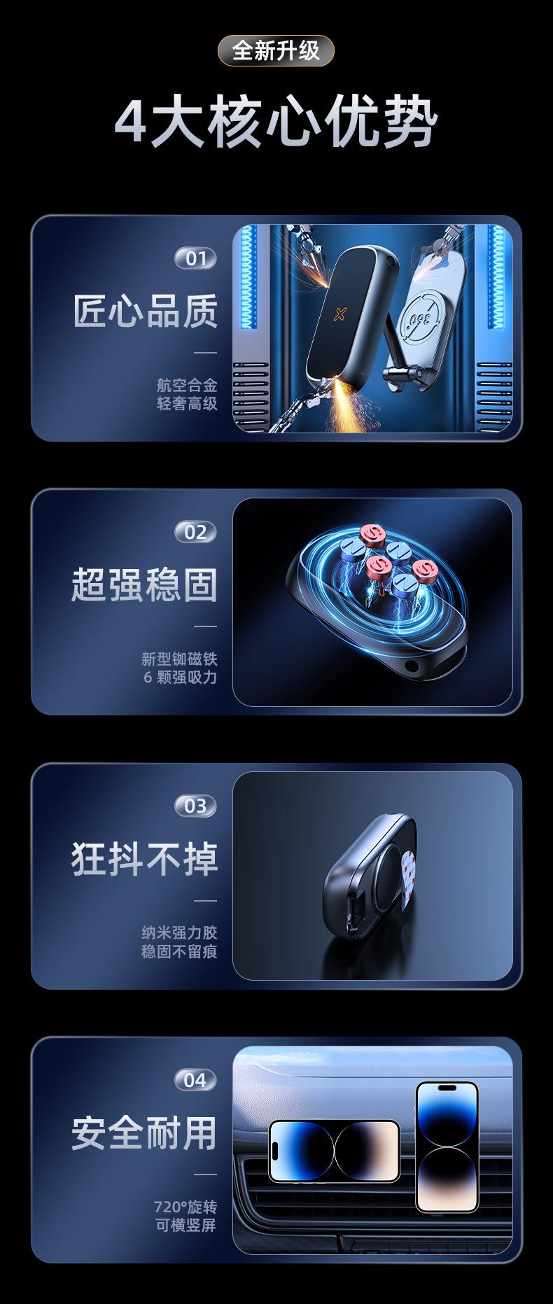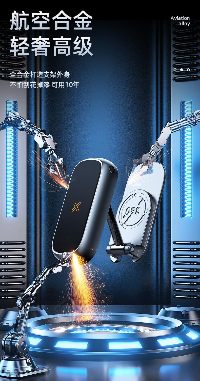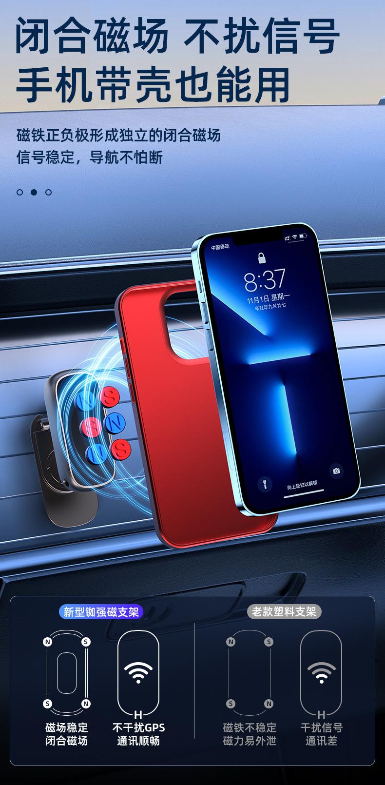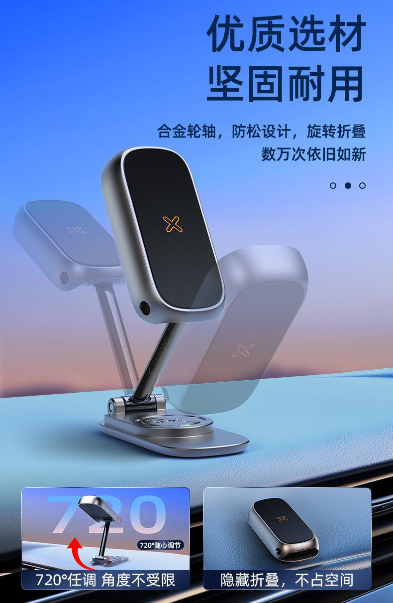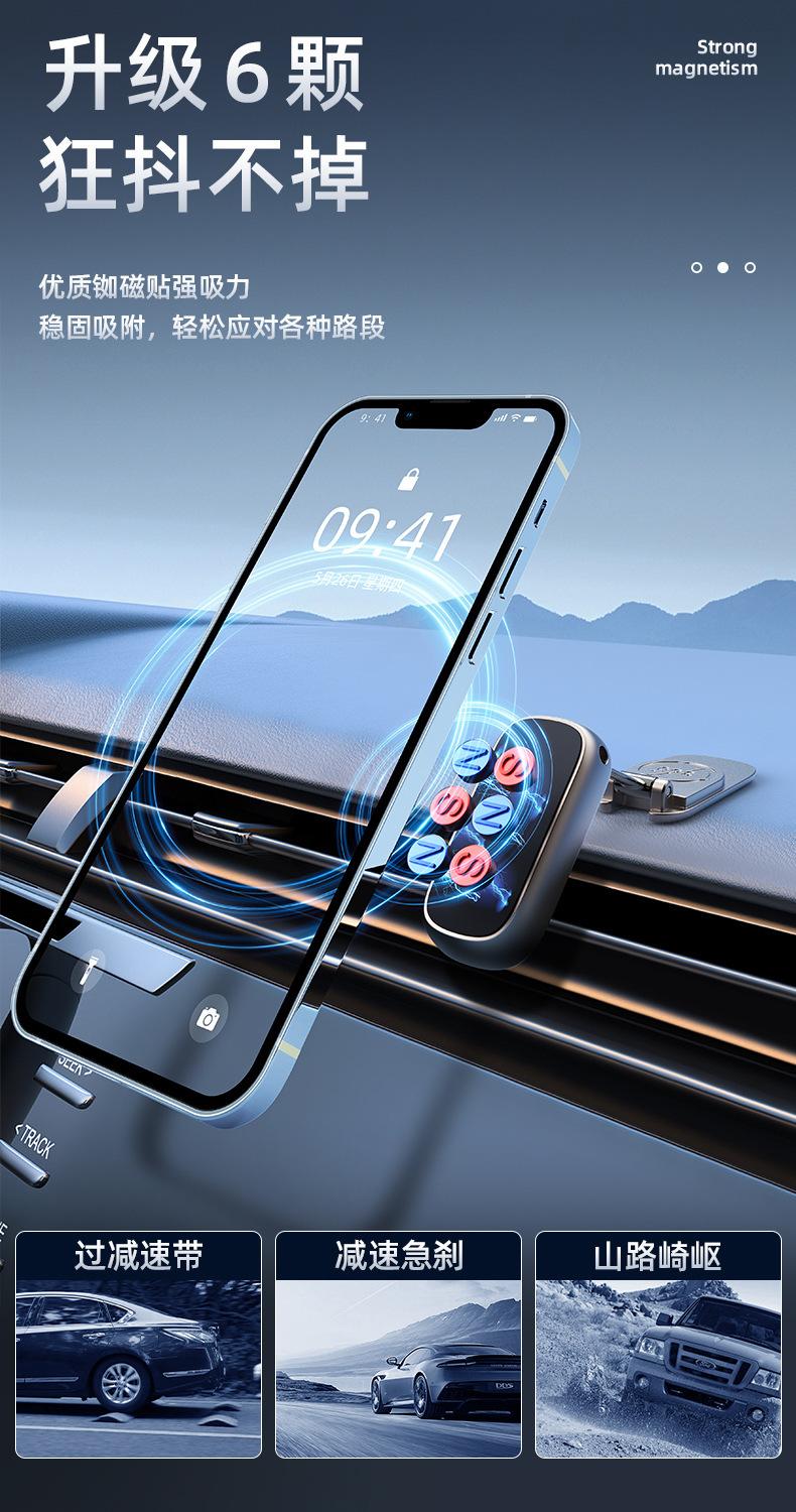 Suporte do telefone móvel do carro, sucção magnética, quadro de navegação do carro, painel de instrumentos magnético forte, pasta, dobrando nova liga de alumínio transfronteiriça