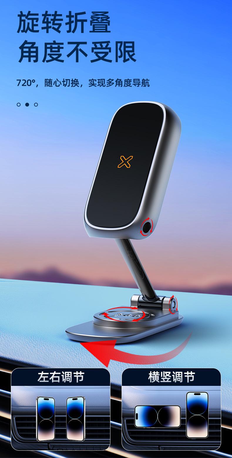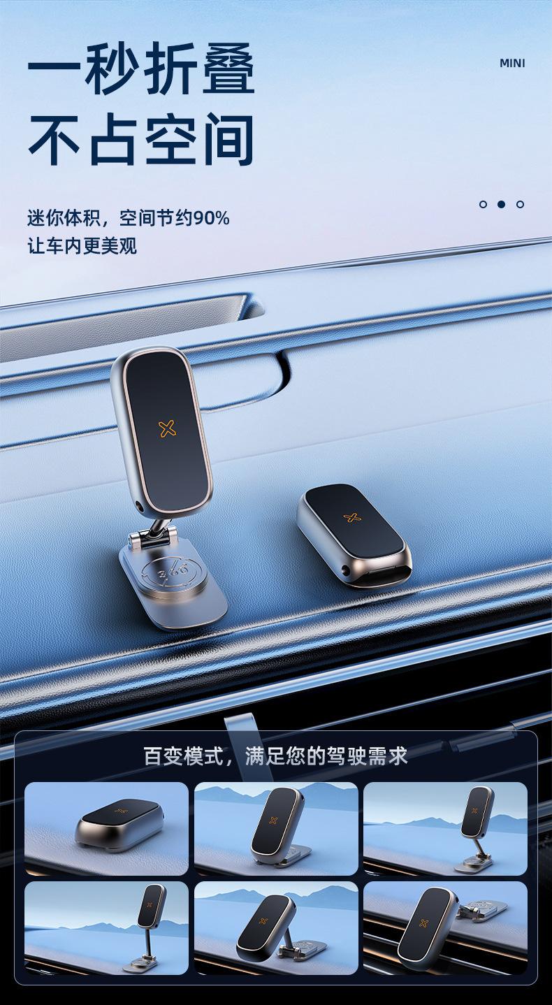 Compre Suporte do telefone móvel do carro, sucção magnética, quadro de navegação do carro, painel de instrumentos magnético forte, pasta, dobrando nova liga de alumínio transfronteiriça no atacado no Joom.pro