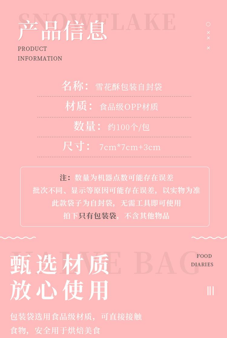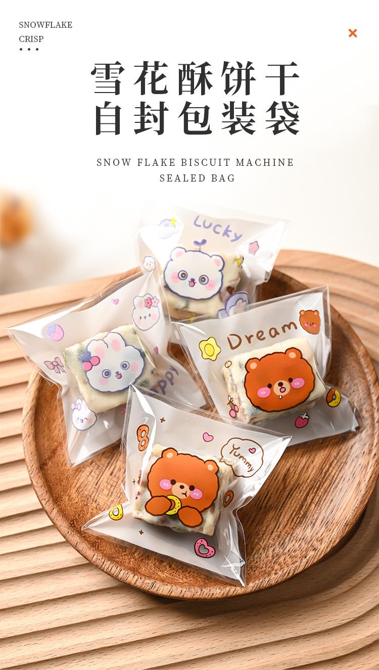 Novo Bonito Dos Desenhos Animados Floco De Neve Crisp Saco De Embalagem Biscoito De Cozimento Pequeno Saco De Biscoito Nougat Saco De Doces Auto-adesivo