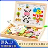Caixa de armazenamento de fazenda de madeira direta da fábrica quebra-cabeça magnético quebra-cabeça dupla face prancheta brinquedos educativos para crianças