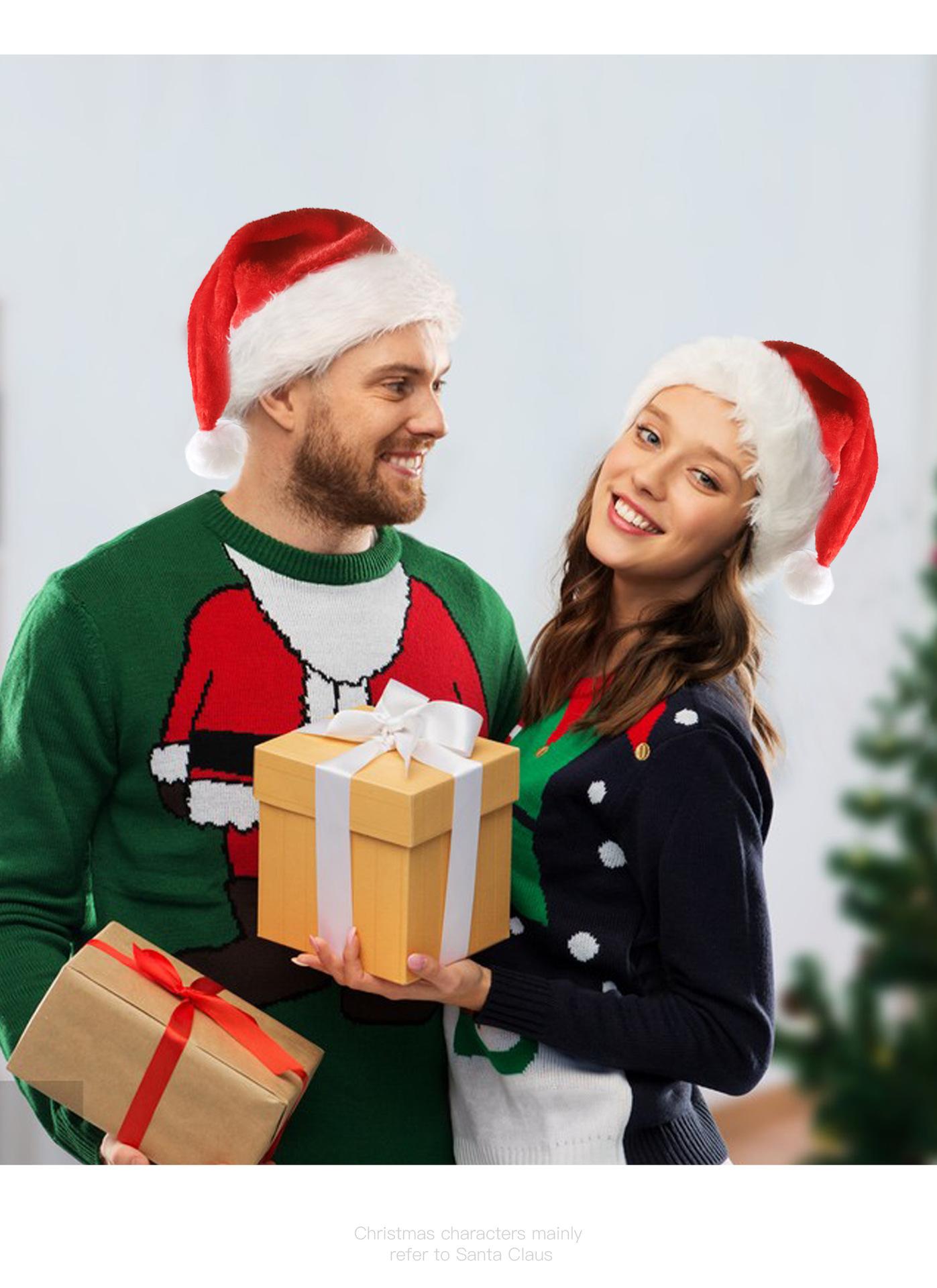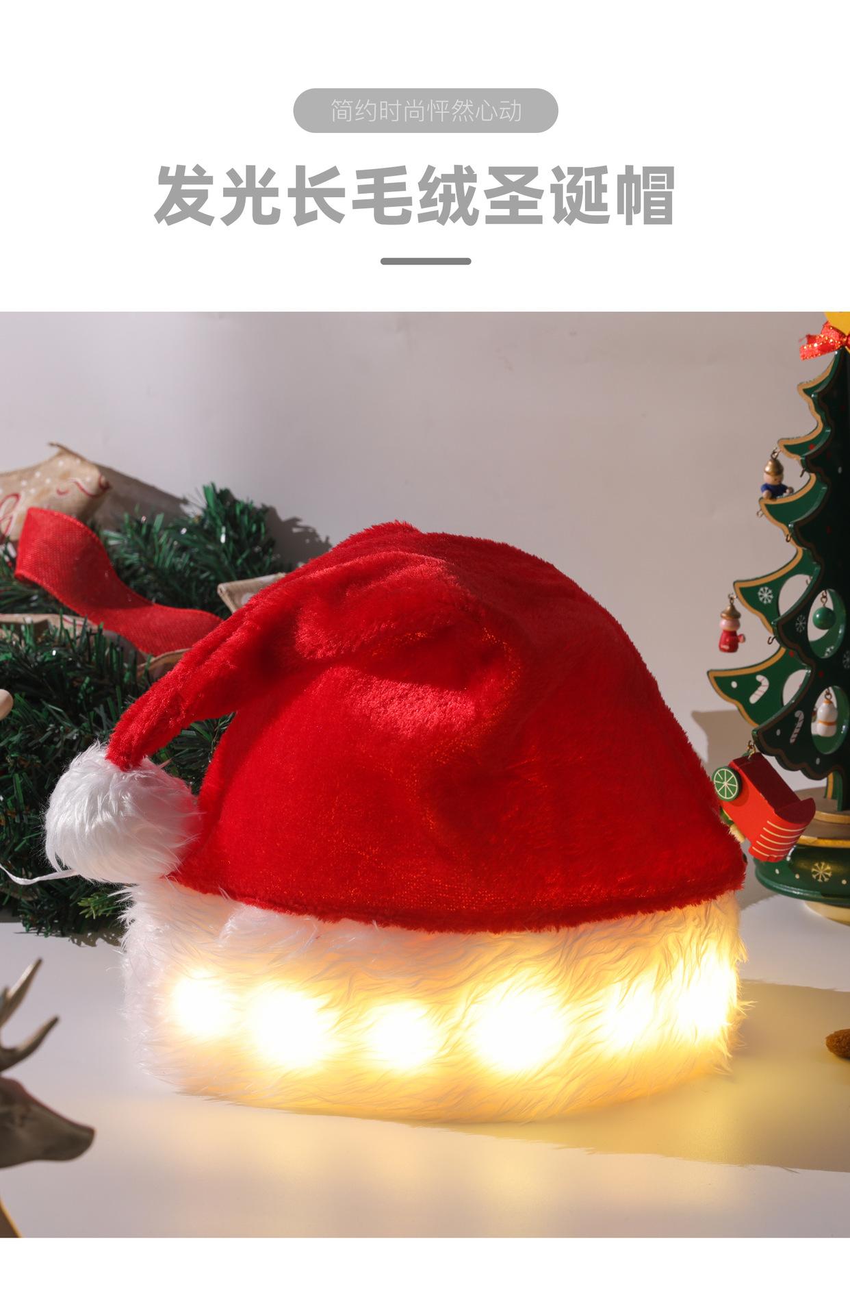 Decoração de Atmosfera de Natal Transfronteiriça Novo Chapéu Vermelho de Natal de Pelúcia Luminoso Chapéu Luminoso de Fundo