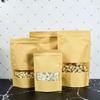 Saco de papel Kraft autoportante de janela HD para alimentos Doces grãos saco autovedante saco de embalagem selado porca atacado