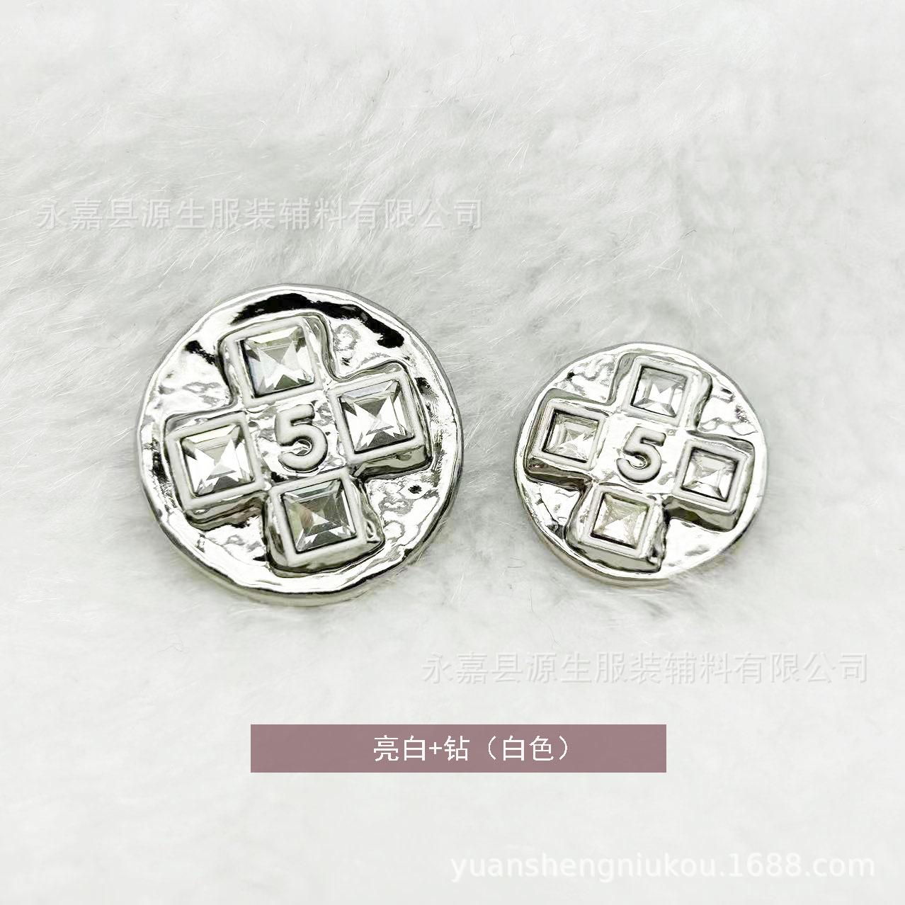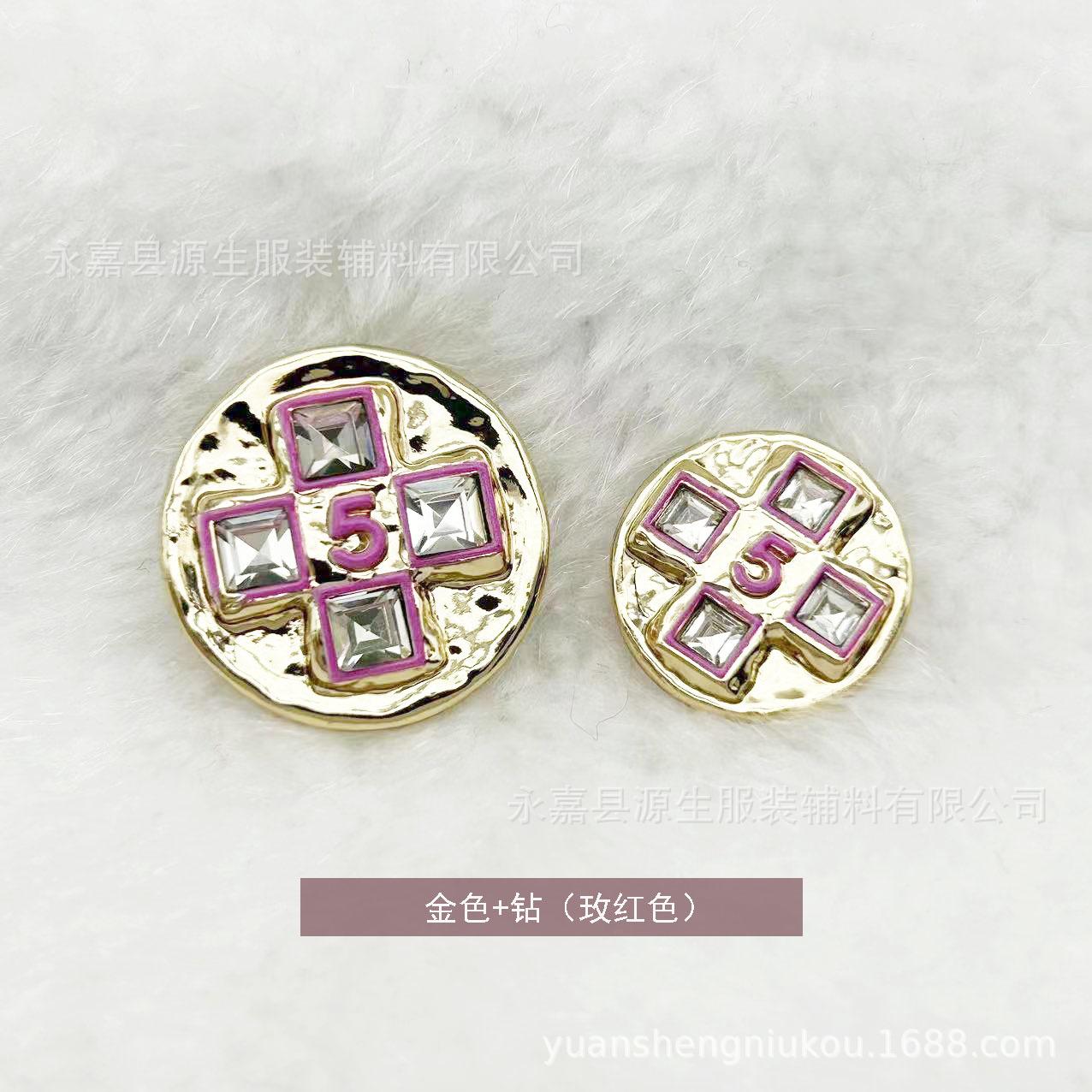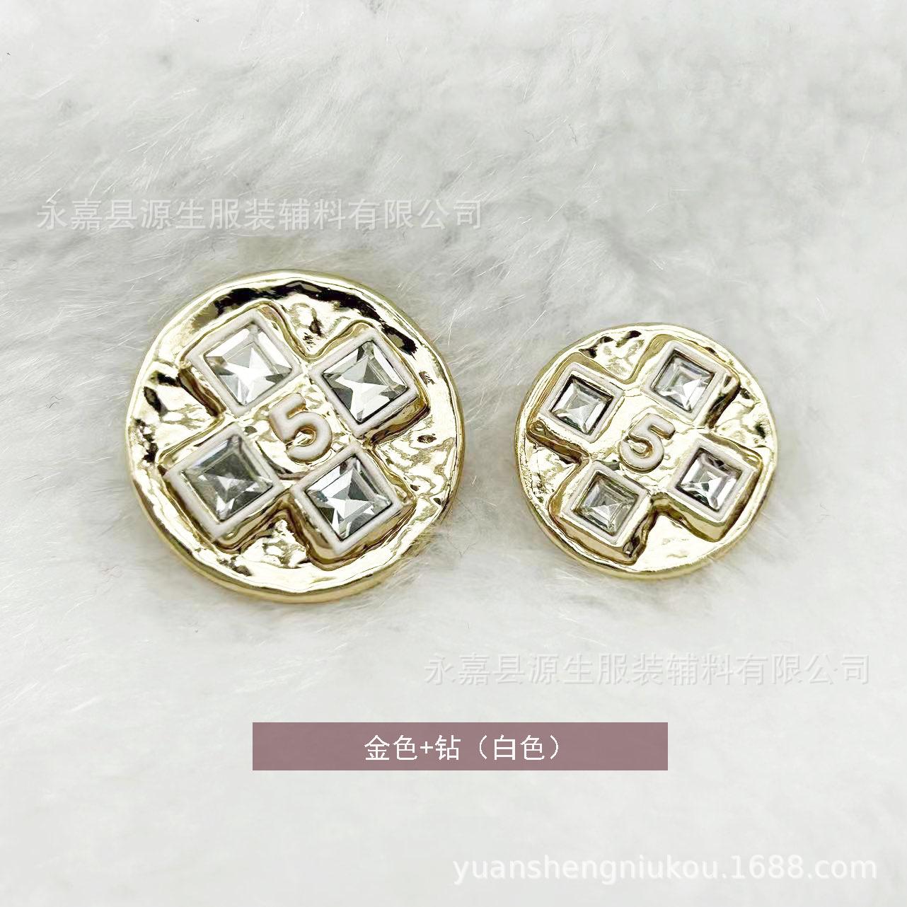 Estilo Chanel botão de metal 5 palavras Diamante embutido fivela costurada à mão casaco de tweed casaco camisola camisola fivela decorativa