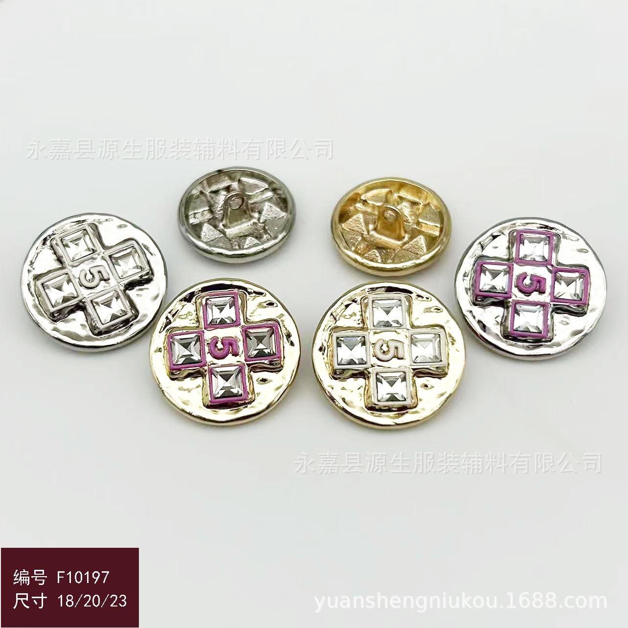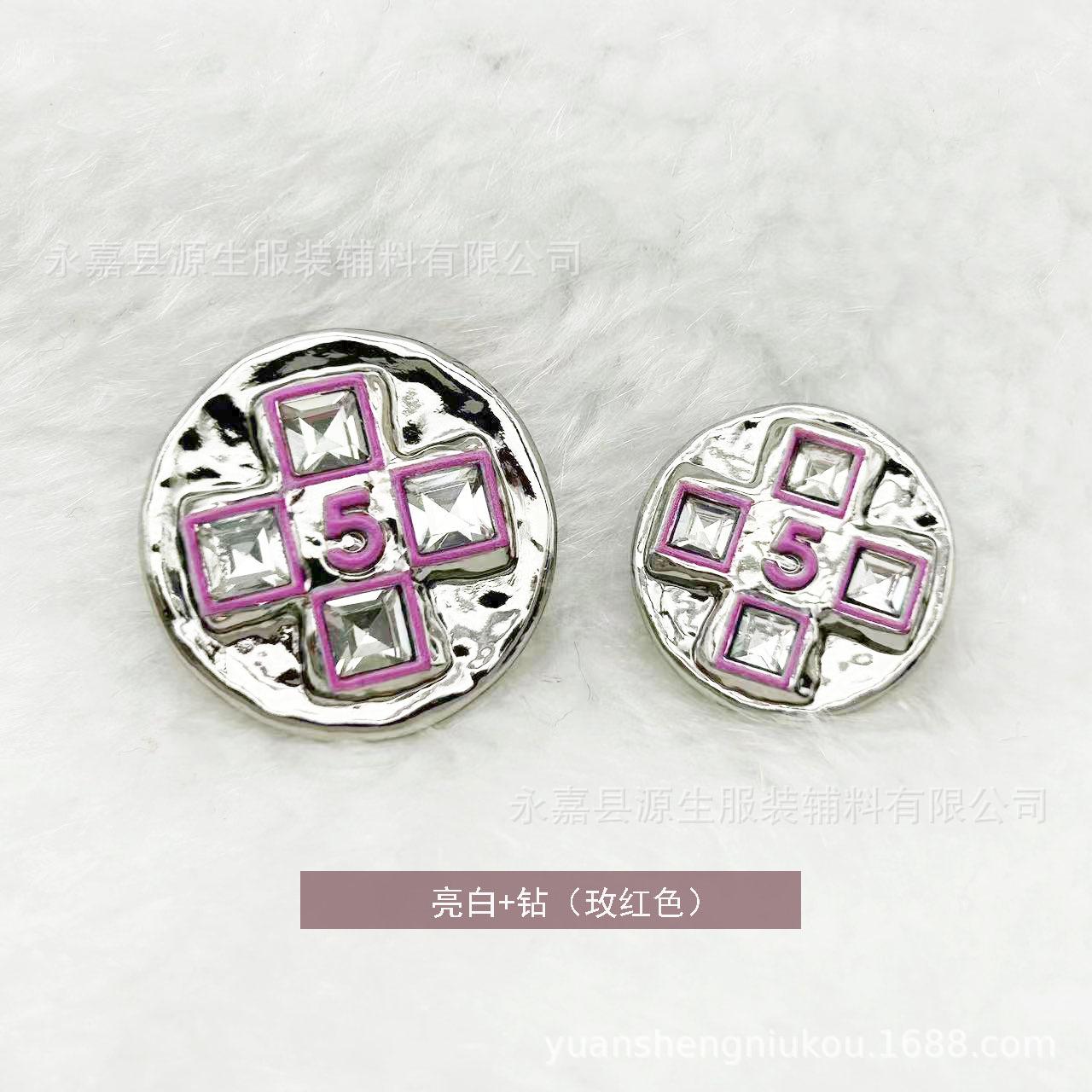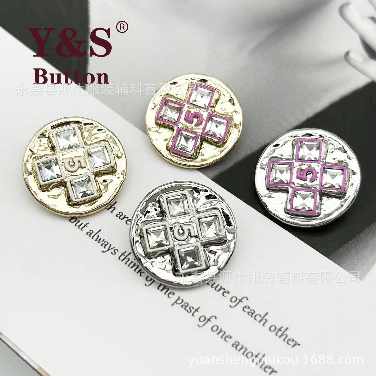Estilo Chanel botão de metal 5 palavras Diamante embutido fivela costurada à mão casaco de tweed casaco camisola camisola fivela decorativa