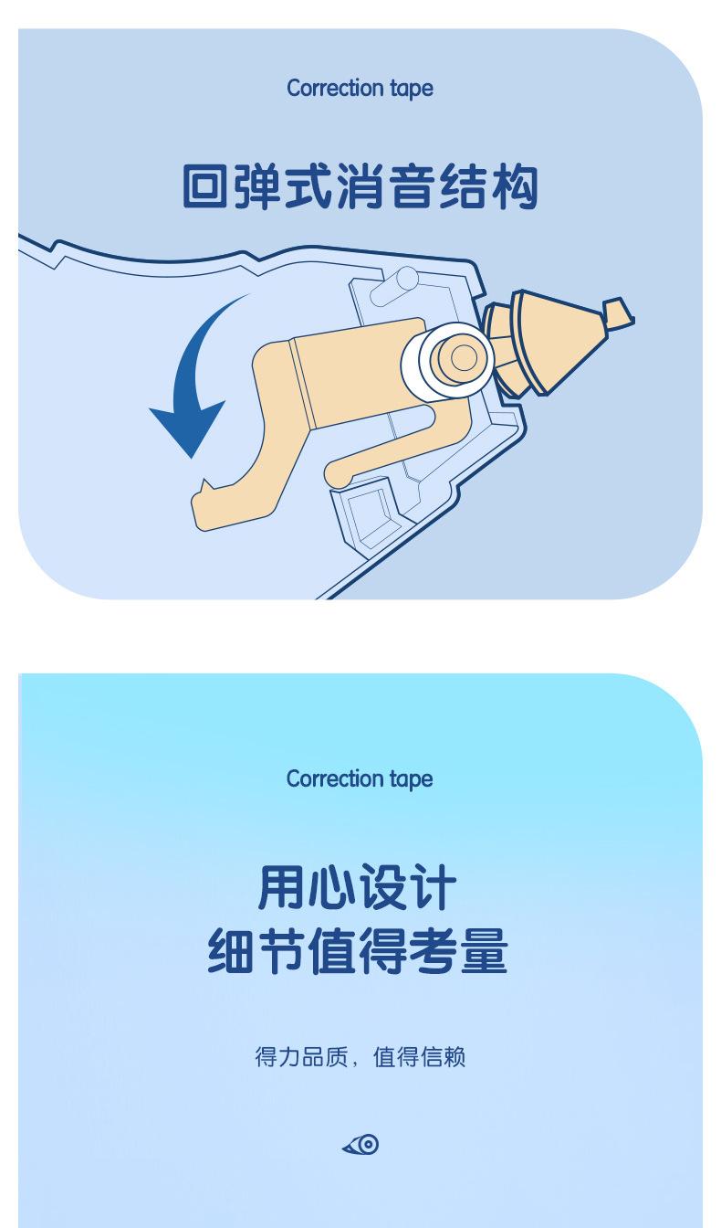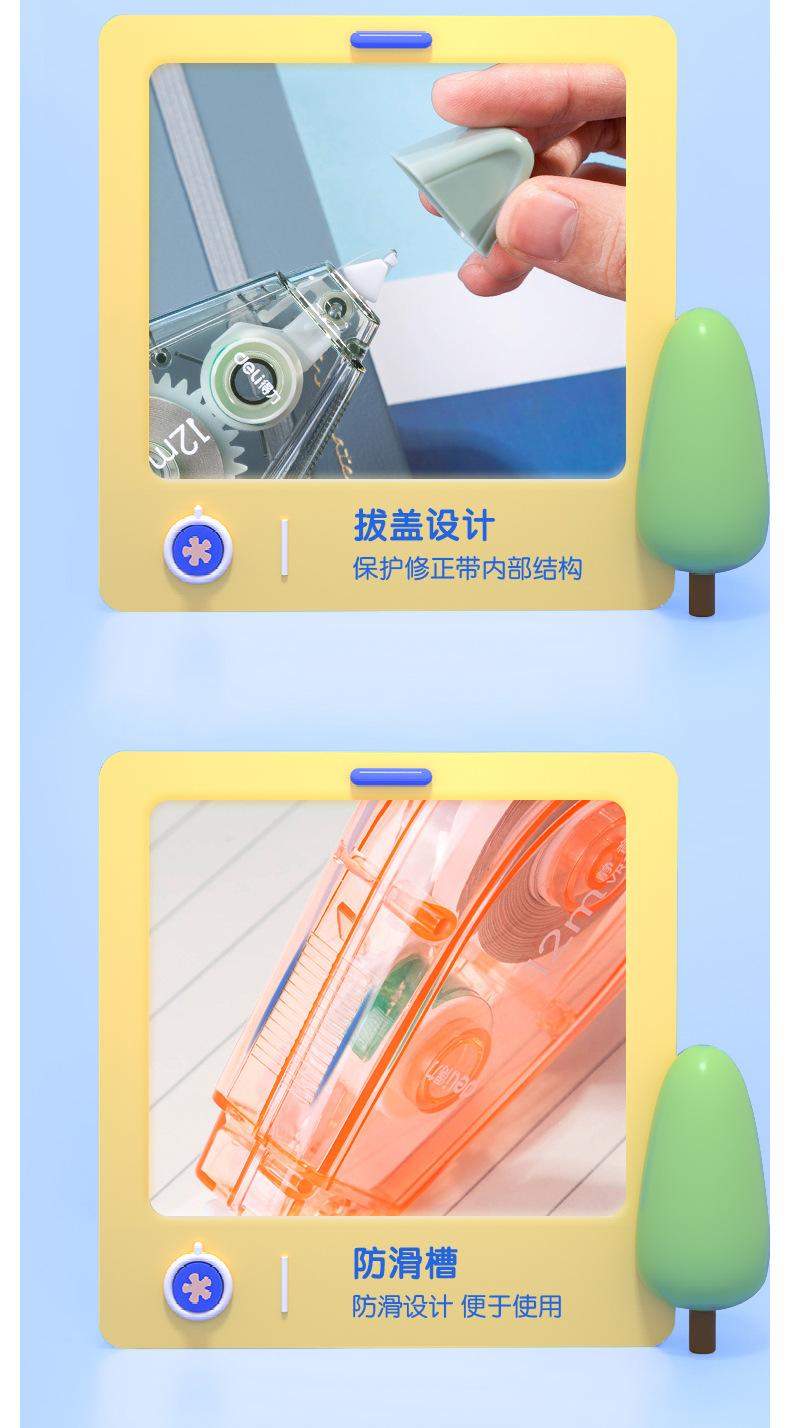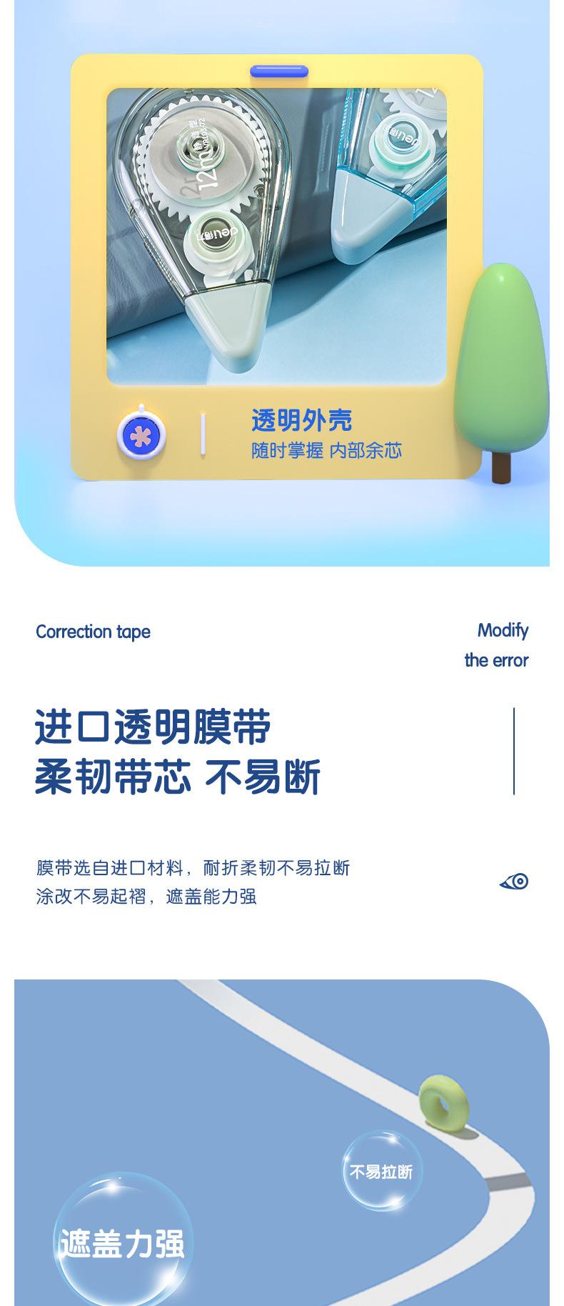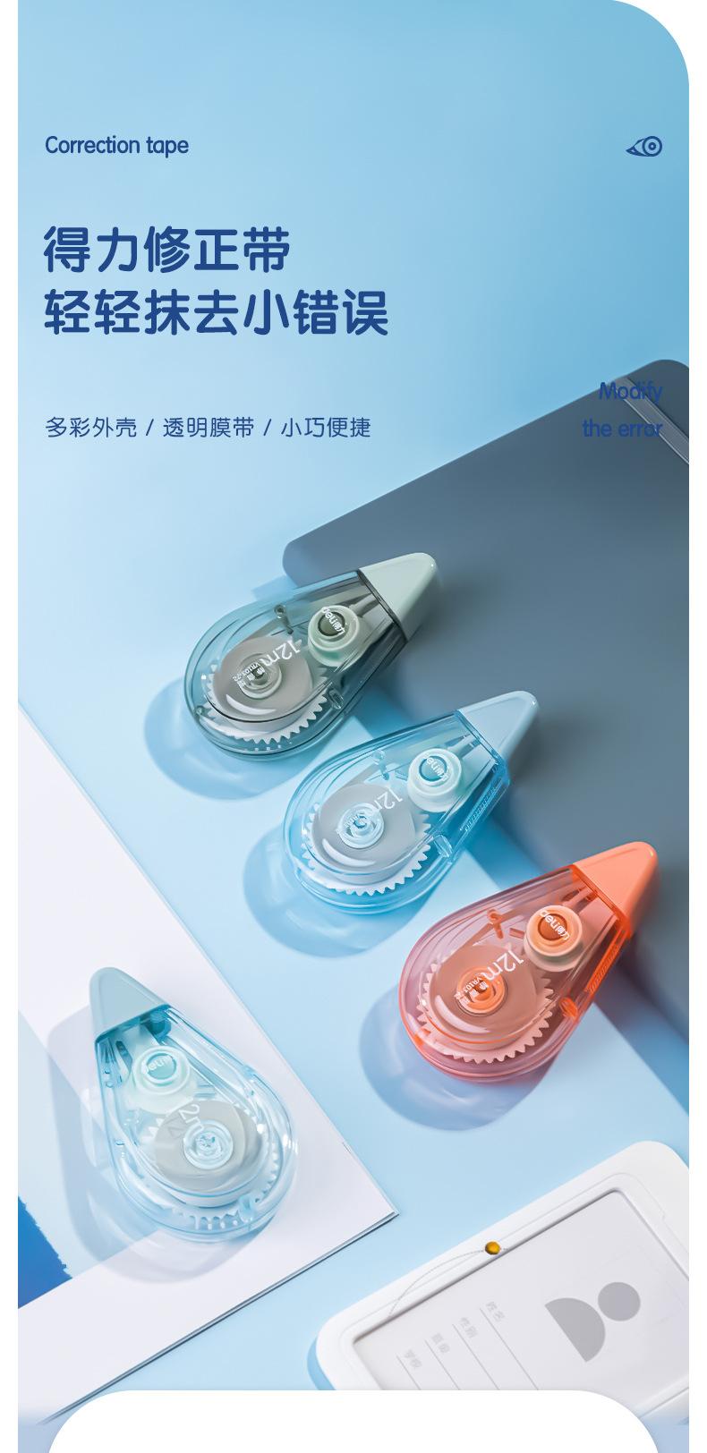 Deli Fita Corretiva Modelo Silencioso 72,6m Pacote Acessível Estudante Grande Capacidade Fita Corretiva para Erros de Digitação Papelaria Atacado