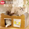 Gato Urso de Porta Dupla com Cortina de Porta, Ninho de Gato, Arranhador de Gato, Brinquedo Integrado, Papelão Ondulado para Animais de Estimação Resistente a Arranhões, Suprimentos para Gatos para Afiar as Unhas