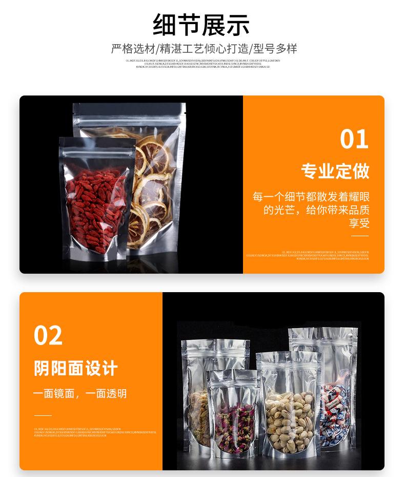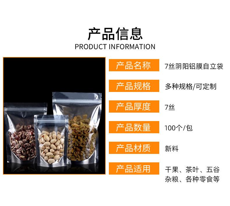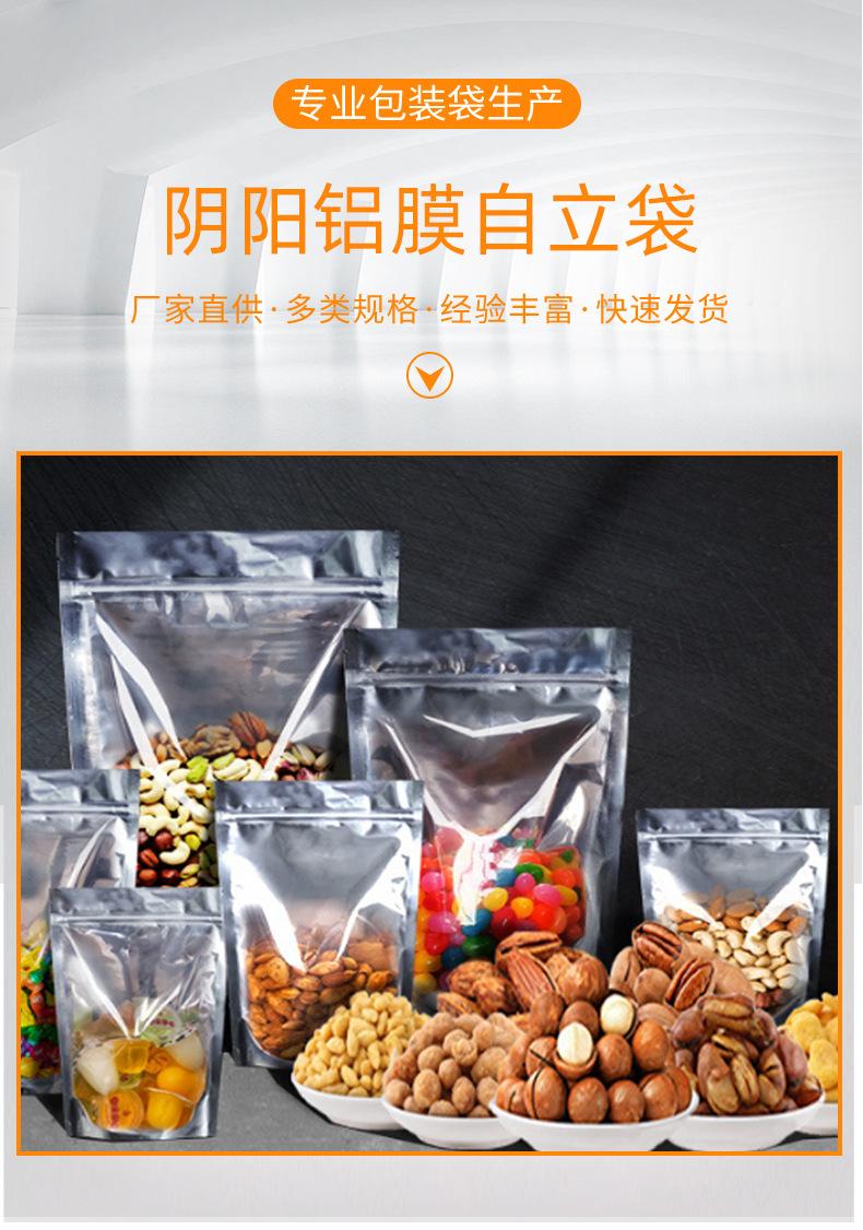 Saco de embalagem de alimentos de nozes banhado a alumínio plástico translúcido Yin-Yang Filme de alumínio saco autoportante saco selado com zíper Yin-Yang saco