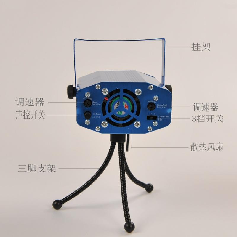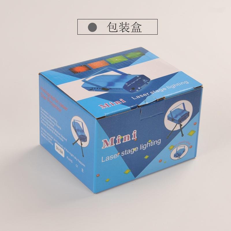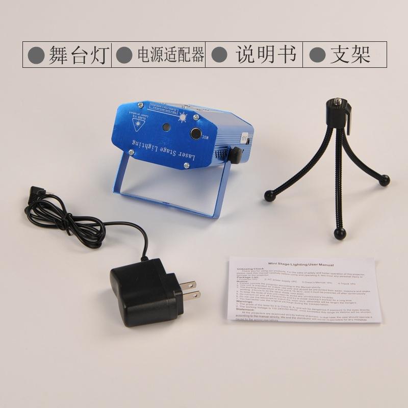 Uma luz laser (incluindo alça), embalagem em caixa colorida, tripé, adaptador de energia, manual do produto.