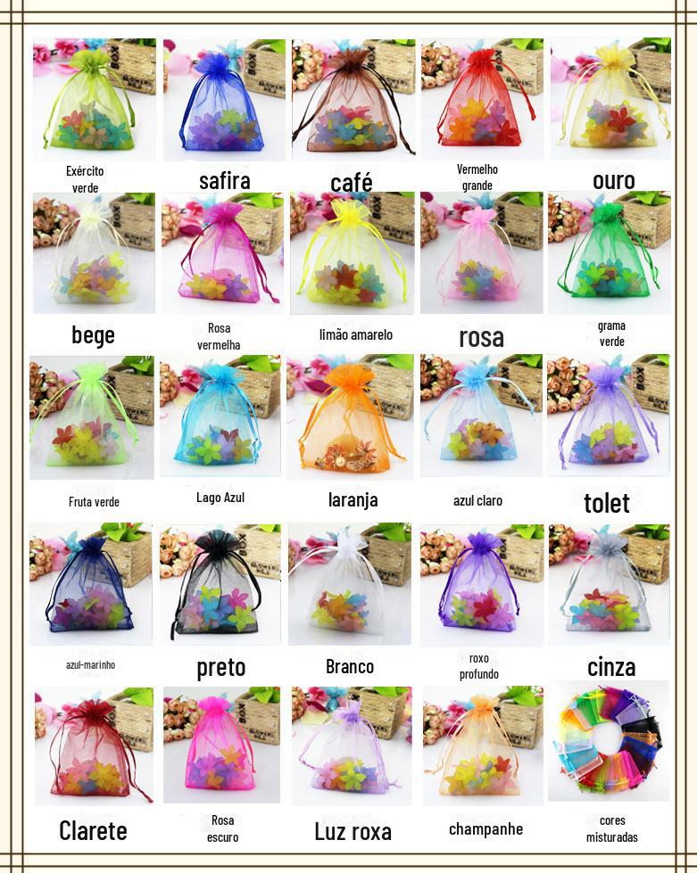 【Nome do produto】: Sacos de organza/sacos de joias/sacos de embalagem de presentes/sacos de doces de casamento/sacos de cosméticos/sacos promocionais