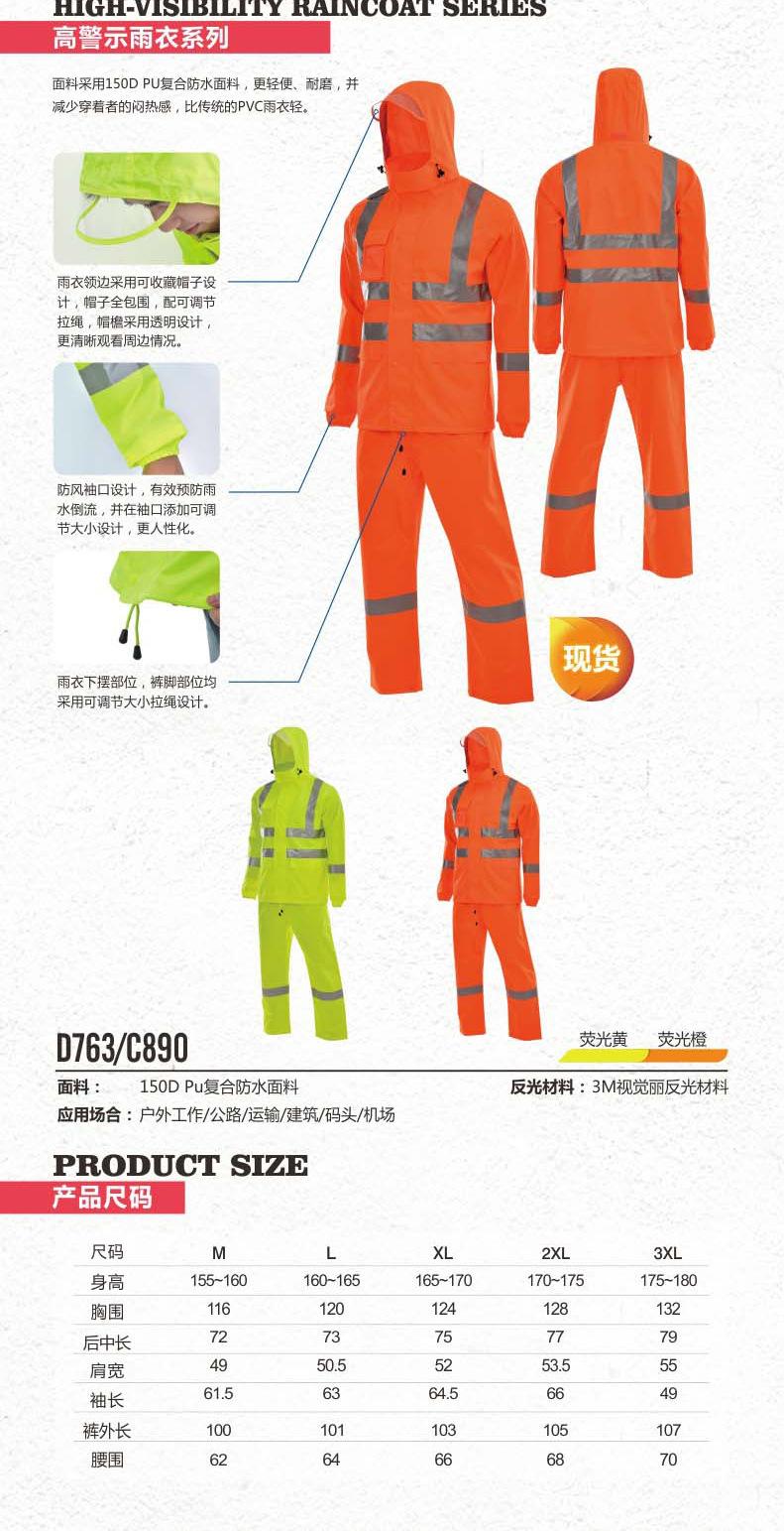 Tio An D763 / C890 Capa de chuva reflexiva Transporte rodoviário ao ar livre Construção Aeroporto PU Capa de chuva