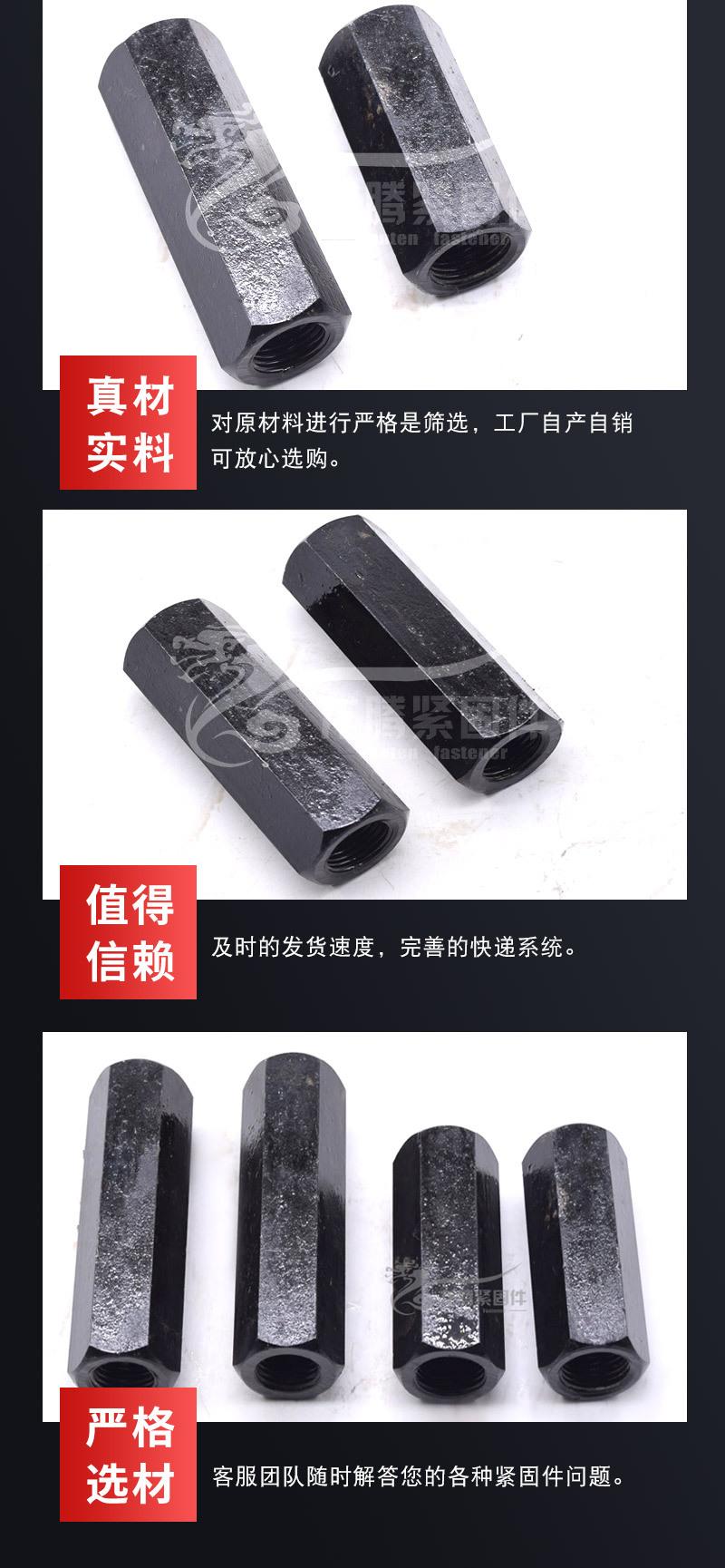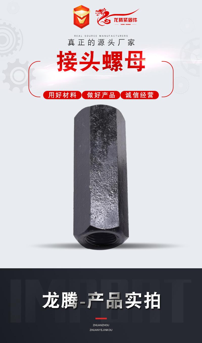 Fornecimento de extensão de porca de junta de 8,8 graus porca longa porca de parafuso porca de junta oxidação porca sextavada externa enegrecida