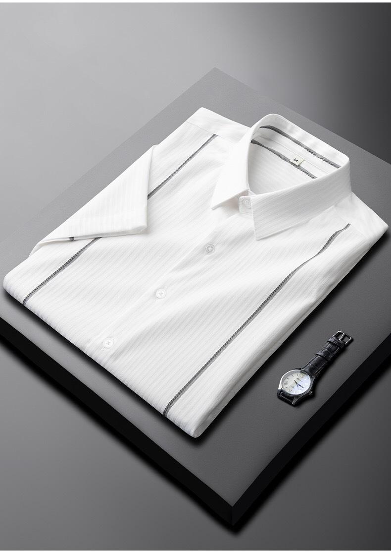 Desenvolvimento de fábrica Camisa listrada jacquard de luxo leve tecido masculino com tecido de fibra de poliéster camisa de pano masculina