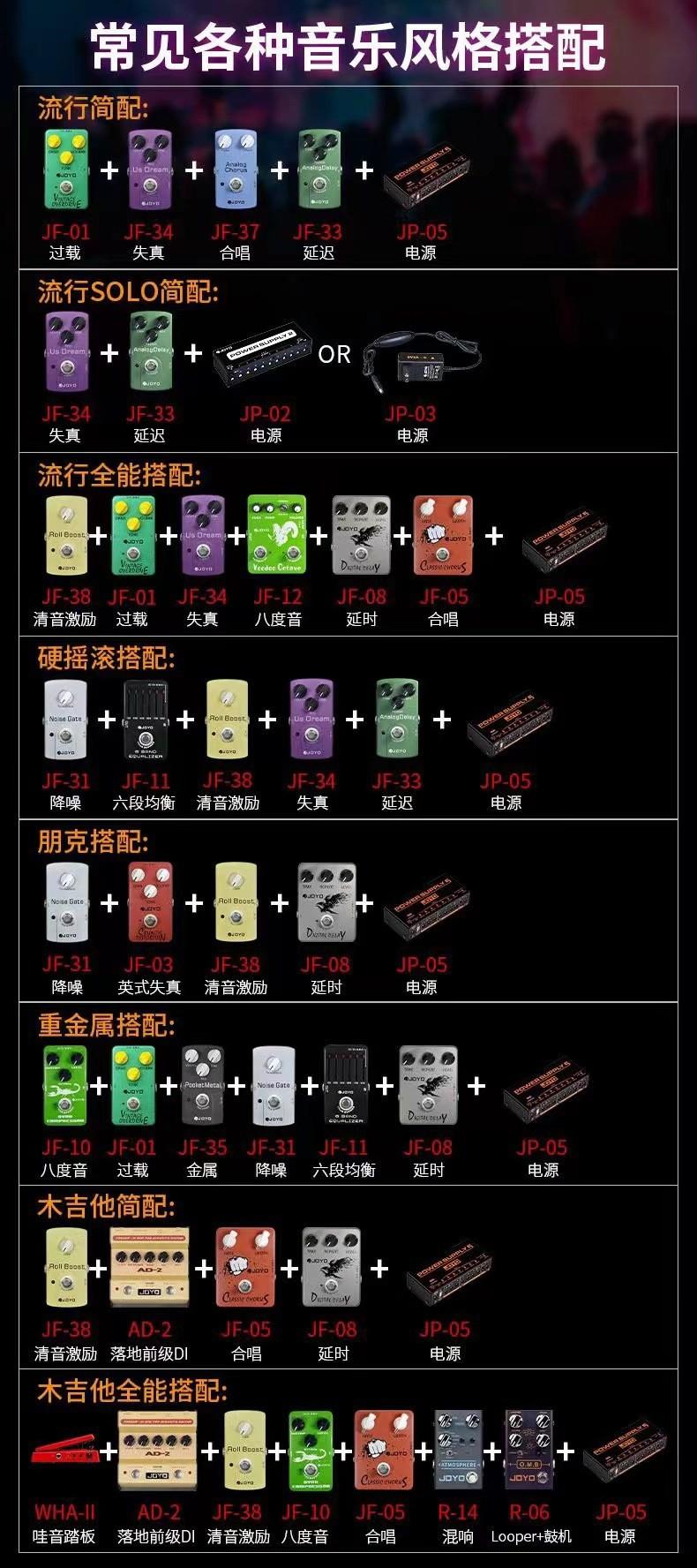 Cross-border JOYO Guitarra elétrica efetor monobloco mini efetor clássico sobrecarga atraso metal pesado distorção fonte de alimentação