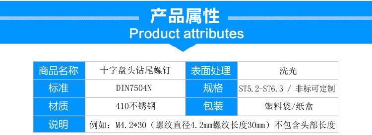 Parafuso de cauda de broca cruzada de cabeça redonda de aço inoxidável 410, cabeça de panela, autoperfurante, parafuso de cauda de andorinha de telha de aço colorido M4.2M4.8