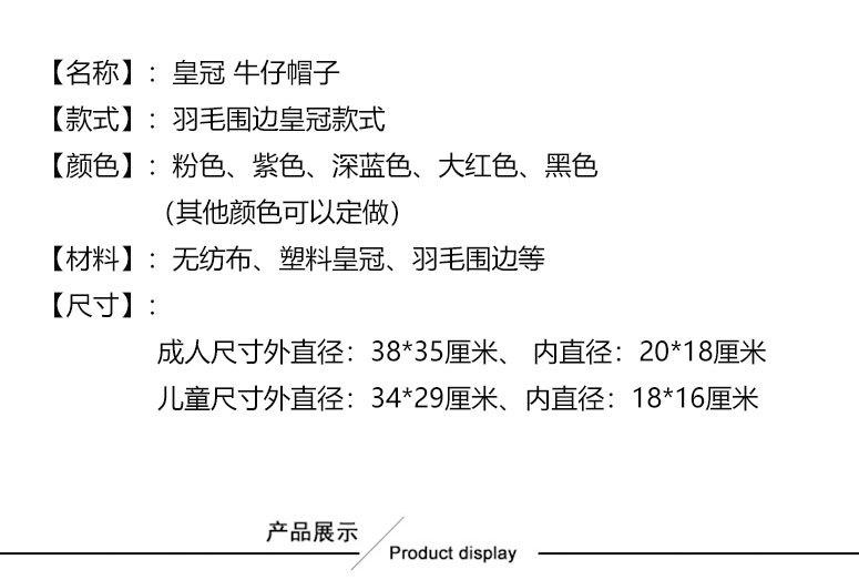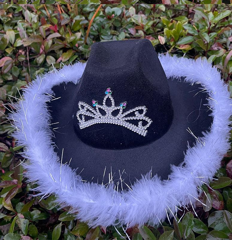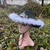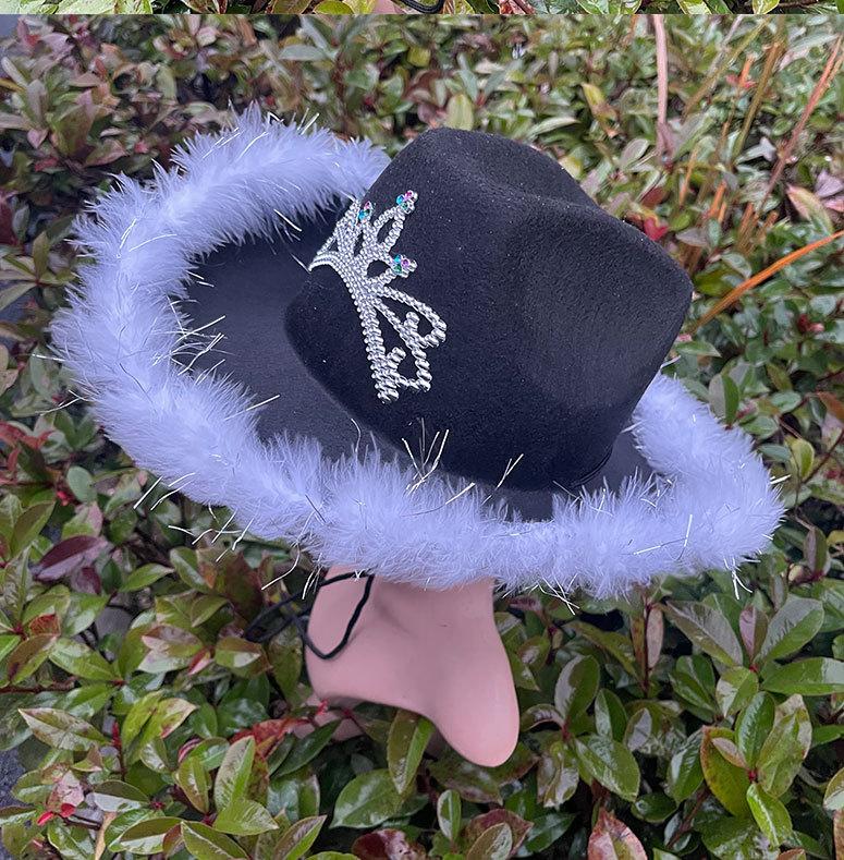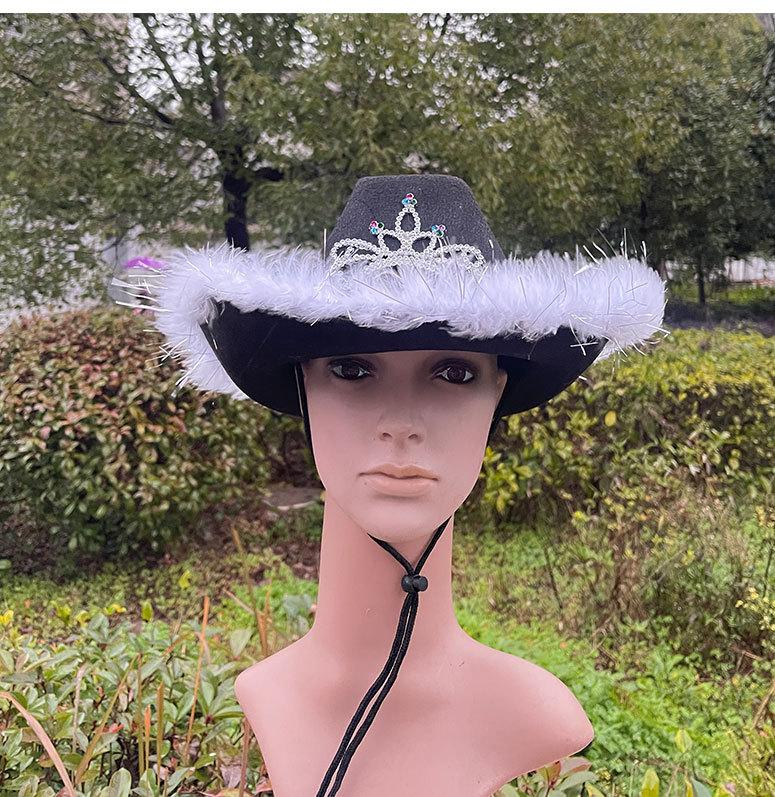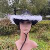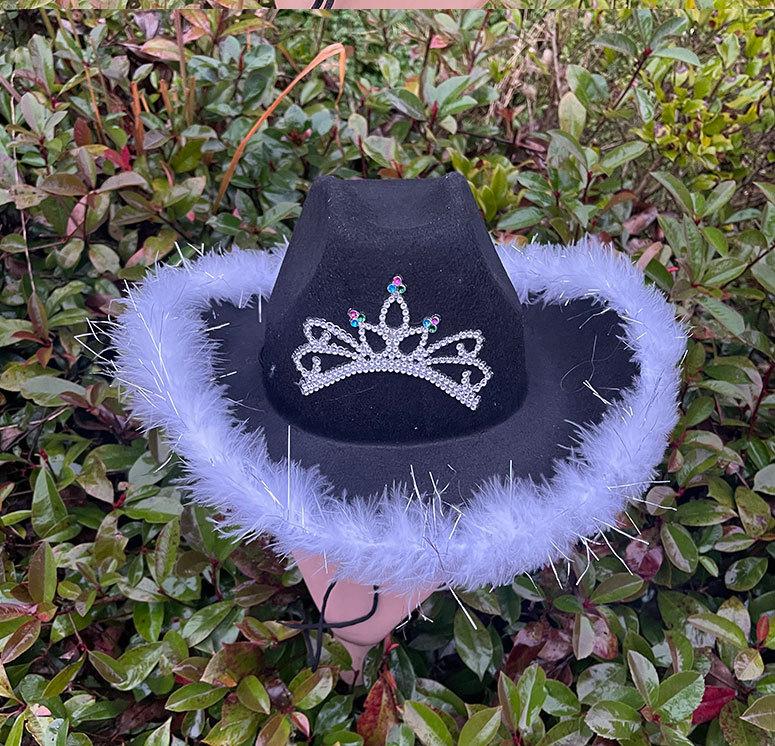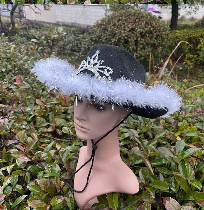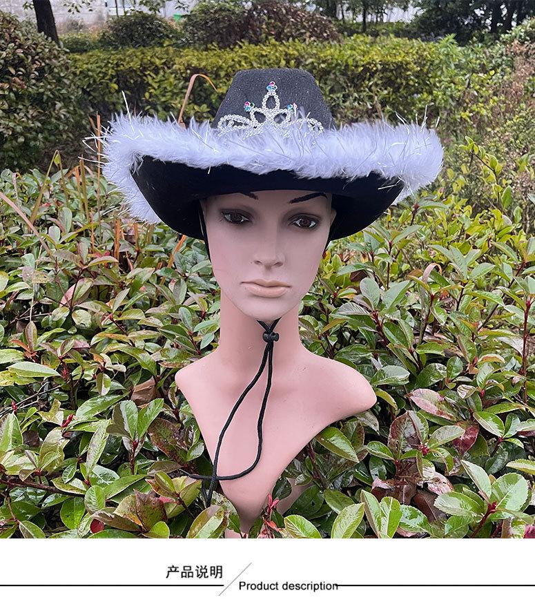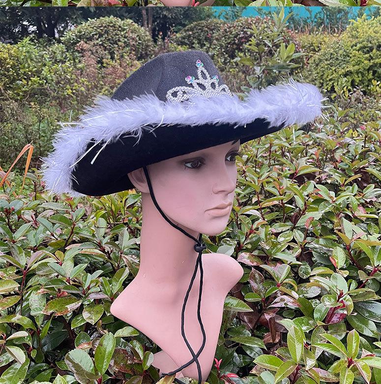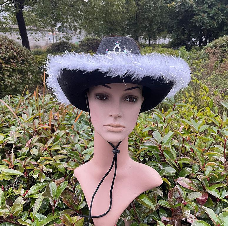 Spot Amazon Hot Sale Black Western Denim Chapéu Coroa Cocar Palco Chapéu Pena Lantejoulas Feltro Chapéu