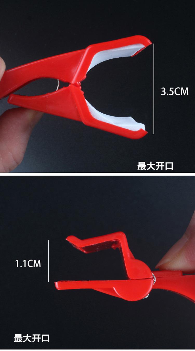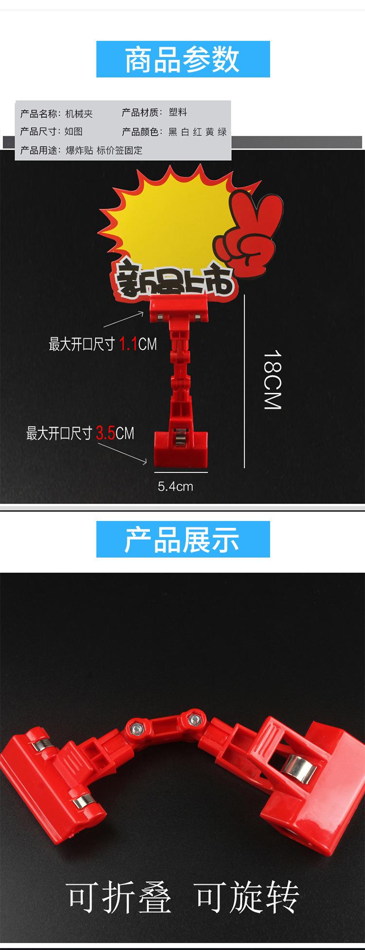 Tamanho: largura total 5 cm, altura 18 cm, largura do clipe de publicidade superior 5,5 cm, tamanho aberto 1,1 cm, tamanho aberto do clipe inferior 3,5 cm, clipe inferior com borracha de esponja branca para obter um efeito de amortecimento