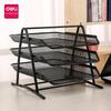 Deli 9181 Rack Organizador de Armazenamento de Três Camadas em Malha Estrutura de Metal para Arquivos Rack de Informações para Mesa de Escritório Cesto para Arquivos